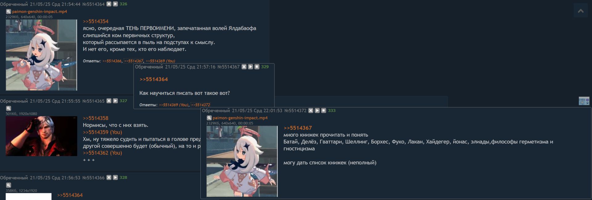 >>5527201 > Был чел травилка с мрачными картинками как его называл Верги Он досихпор постит в бесконечном пишет всем привет я только проснулся >>5527208 Я не думаю что это он, я не уверен но и не уверен в обратном. Просто он тоже писал без ошибок, общался только с хиками и бывало похоже высказывался что много нехик. И еще за кое что зацепился но это оч слабое не буду говорить. Тем не менее он часто писал более словно образно и было словно больше души поэтому все же сомневаюсь