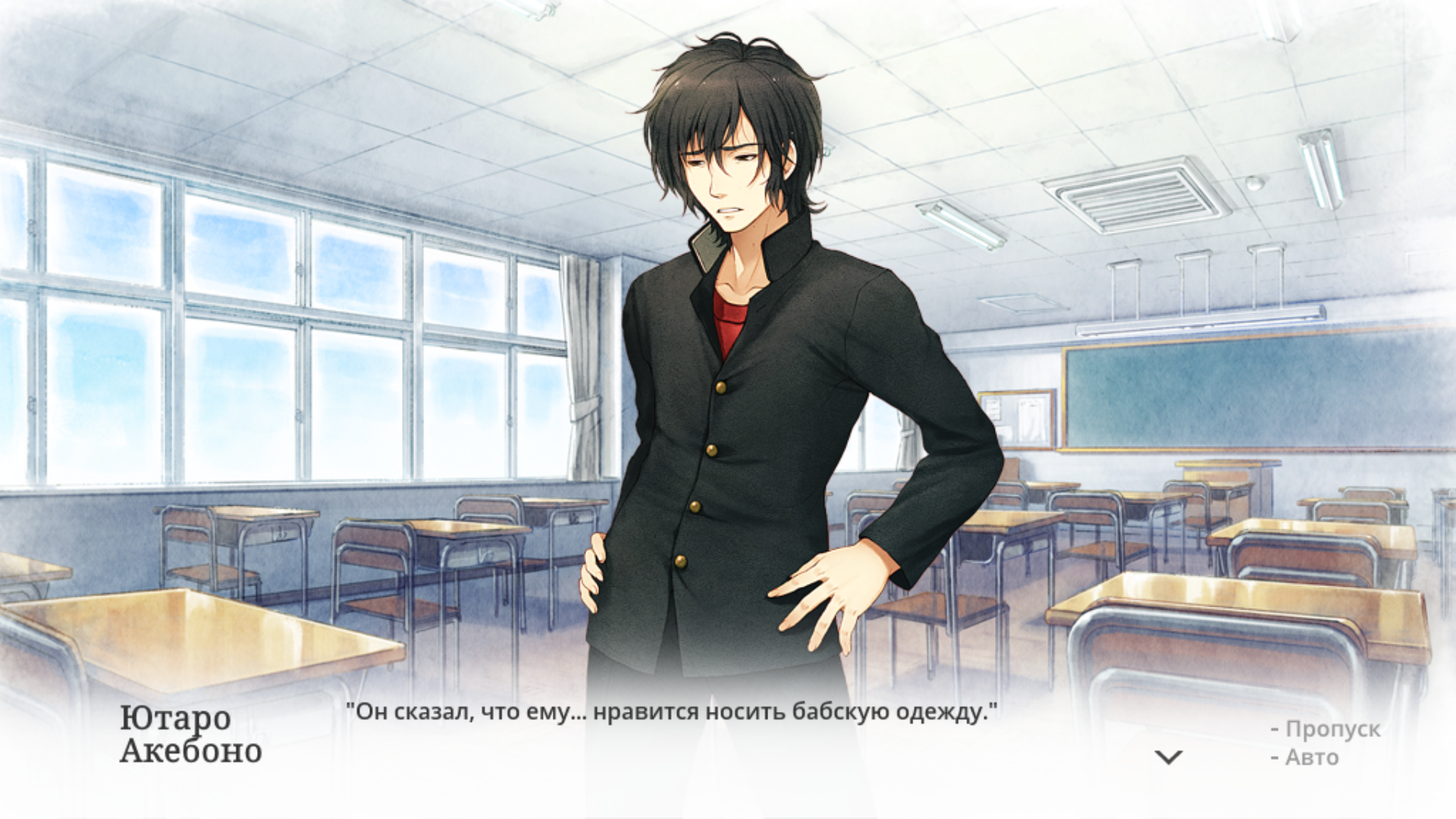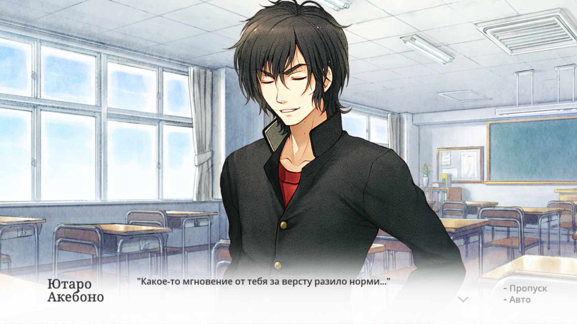Вышел на плохую концовку и ничего не понял. Впрочем, ни разу у меня в новеллах пока что не получалось с первого раза выйти на хорошую концовку. Даже одноклассник протагониста (меня) поменял мнение и перестал называть его (меня) нормисом, а последний скрин - это про меня. Ладно, прохожу дальше, вернулся на последнее сохранение, сделал другой выбор и продолжаю, ведь все же пишут, что это похоже очень на DDLC (точнее, это DDLC на Totono) и даже более безумнее, чем оно.