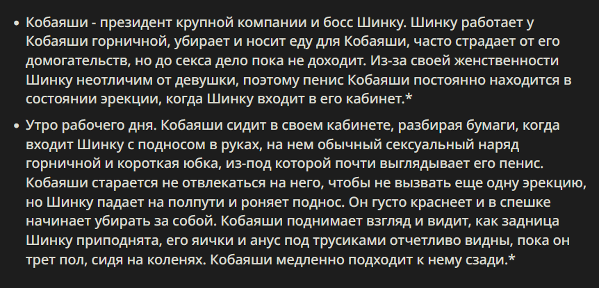 >>5534587 Пишешь выкладываешь. Но я буду через нейросетки делать, там только промпты вбивать и по большей части ты как редактор работаешь. Качество книг которые публикуют там люди оно очч низкое. Там шлак всякий пишут, но люди читают все равно. А невросеть хороший материал может выдавать. Я сейчас главу сделал прочитал ну реально интересно завязка я бы сам такое читал. Но пока не знаю как в долгосроке писать будет, не развалится ли сюжет совсем >>5534589 Я работаю