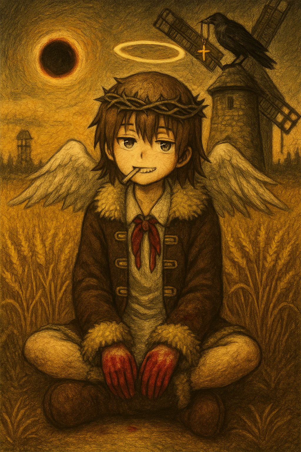 теней на пальцы шынку добавил и ещё немного бликов на волосы ему и у аглибастарда тени около пуговиц сейчас заметил что на второй руке шинкуаве тоже надо было добавити теней мда нет на планшете мышкою бы не смог
