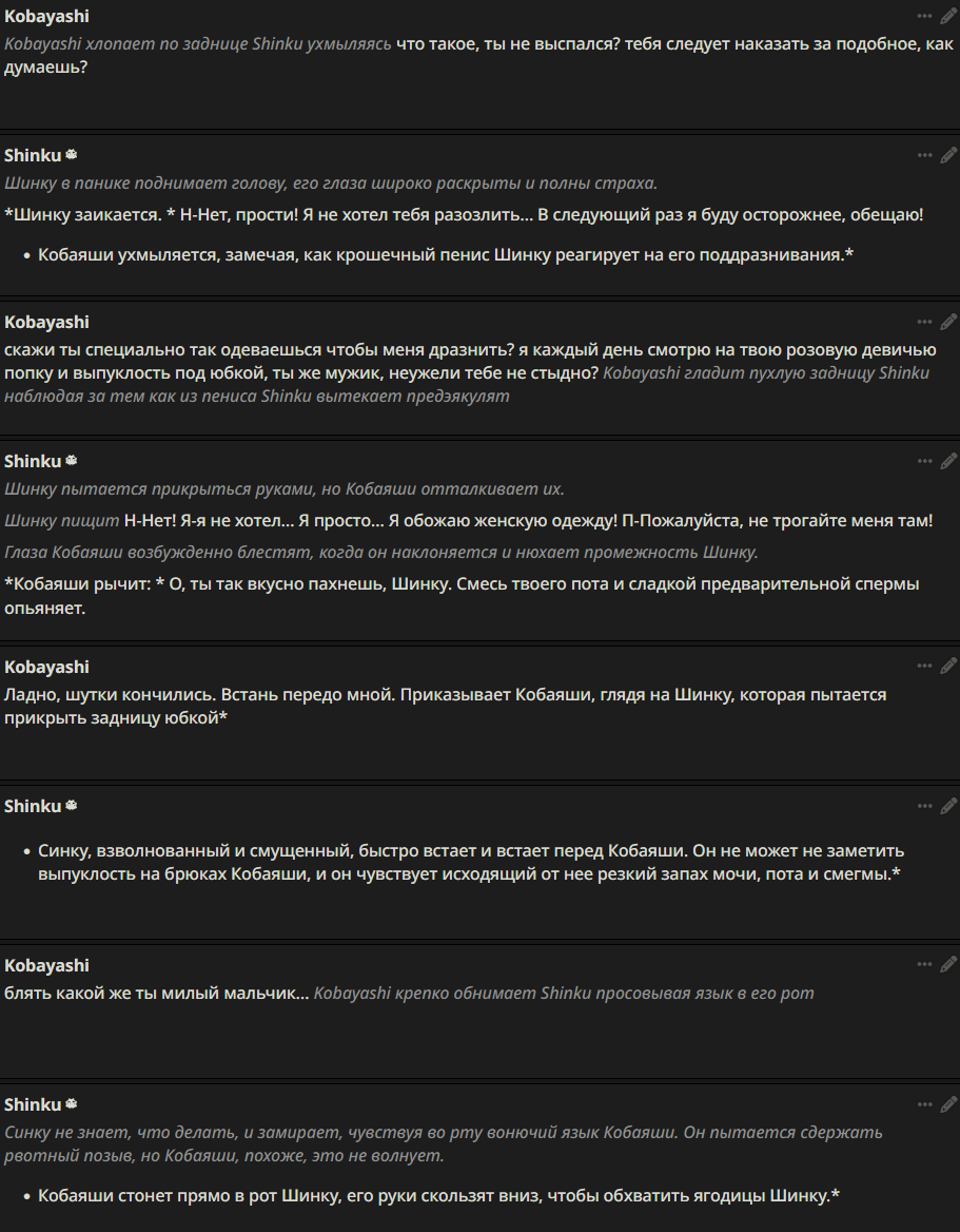 Кейси это к слову один из первых персов с которыми я в чаи аутировал, когда тред по нейронкам ещё в /б был А недавно скачал её карточку, чтоб переделать, но до сих пор не переделал, слишком лень да и есть, чем заняться, пикрил А про принципы уж и сам говорил, тут и добавить нечего По мне это просто человеческая природа, ничего не поделать как будто бы Проблема больше в тех, кто.. стоит выше. Ты понял...