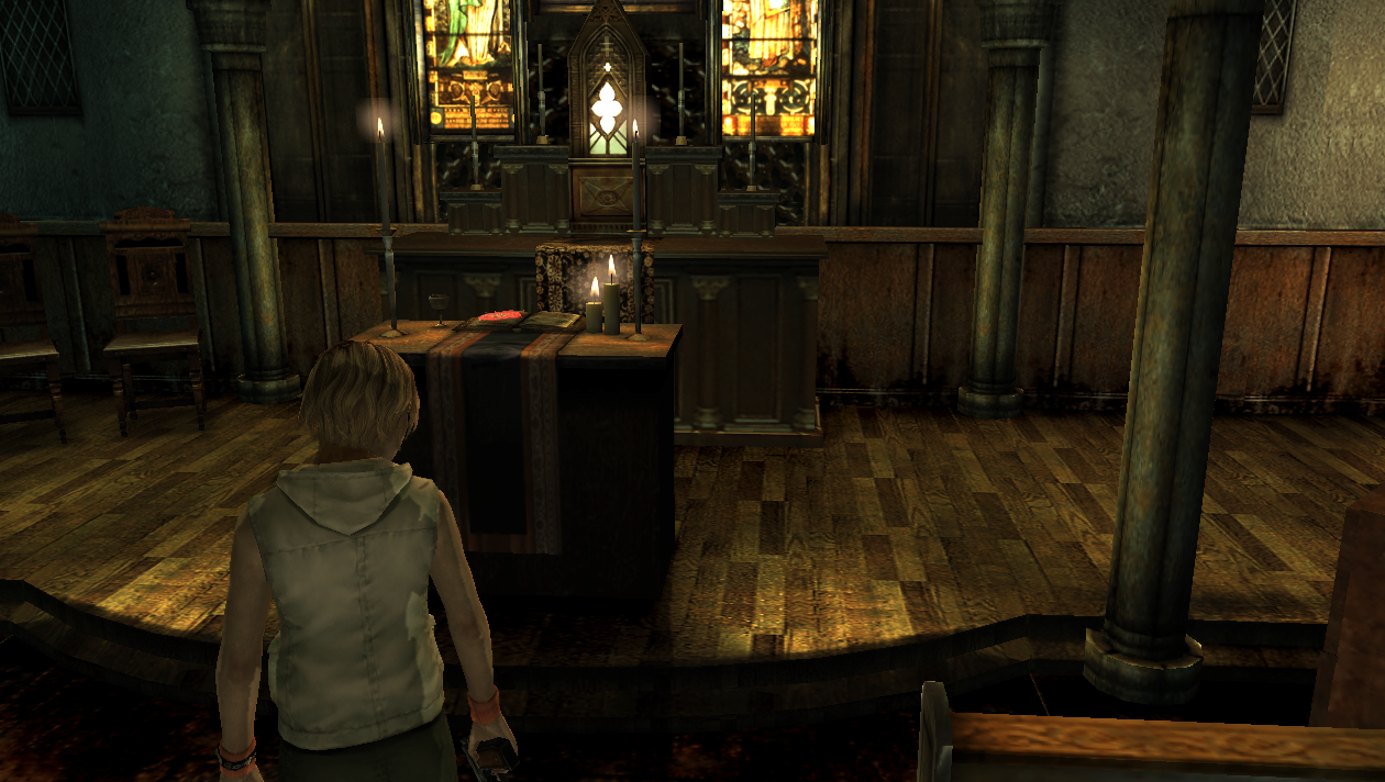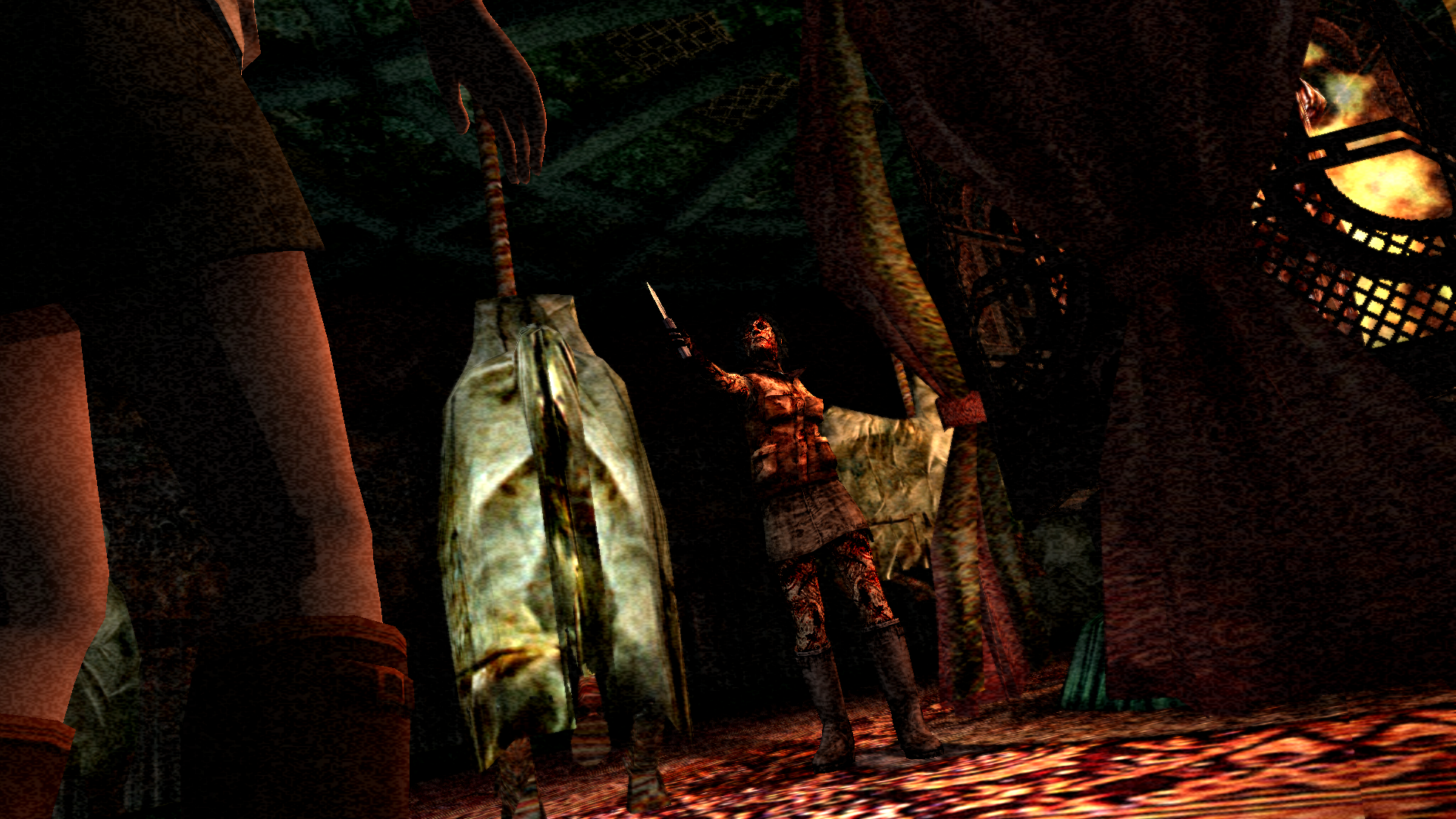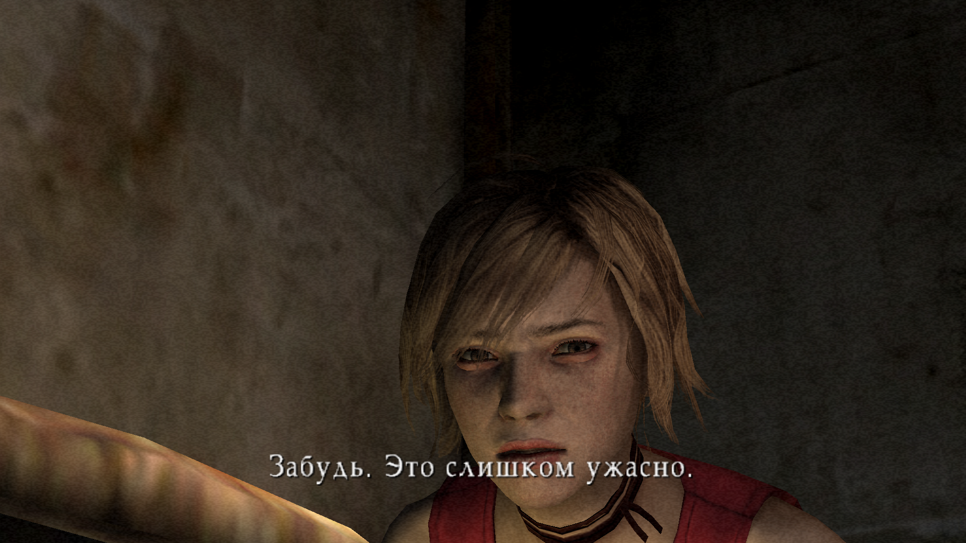 Зато это самая страшная часть - огромные разнообразные монстры, горловое пение в ОСТе, мерцающие кровавые текстуры... В моменте с отражением в зеркале умер? Где сначала обычное отражение, а потом оно замирает, и начинает кровь идти сначала в нем, а потом и в реальной комнате. Если не выбежать, Хизер умрет.
