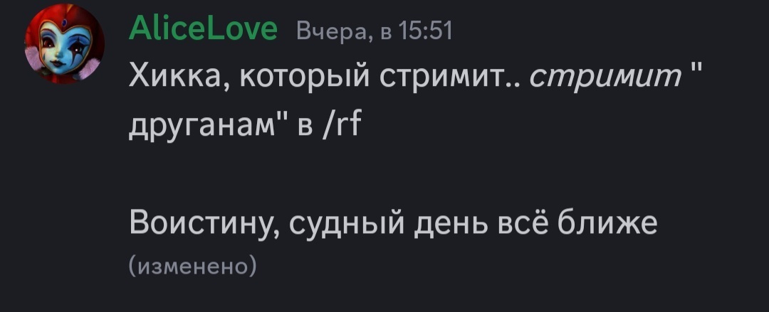 >>5558987 Значит это ты писал про художника, ну в любом случае уверен что у него это не так, иначе зачем он сразу об этом не сказал, и почему сказал именно в такой форме у меня Дискорд только для двача, он специально попытался сразу подстелить соломку, но у него это не получилось