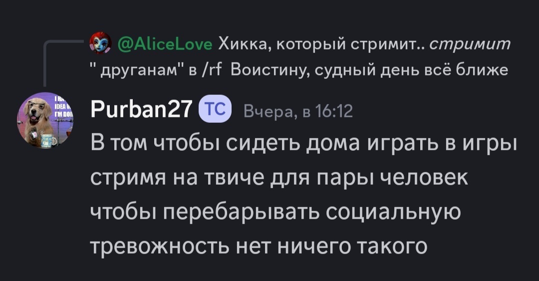>>5559703 Ну если даже искатель друзьяшек и няшек в своем городе, который любит погулять и посмотреть с няшками в дискорде аниме, - хика, то я уж тем более, лмао.