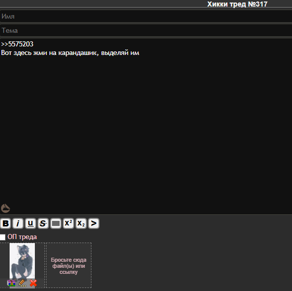 >>5575203 Вот здесь жми на карандашик, выделяй имя файла полностью, жамкай пробел, нажимай справа плюсик чтобы сохранить, готово, можешь отправлять пост..