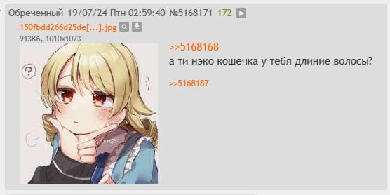 >>5575277 Это какой-то шифр?.. Кошка и прокладка.. Pussy? Или кошка в плане мяу в плане запрещенного вещества? Или... Там скрыто какое-то секретное послание, закодировано какое-то проклятие?..
