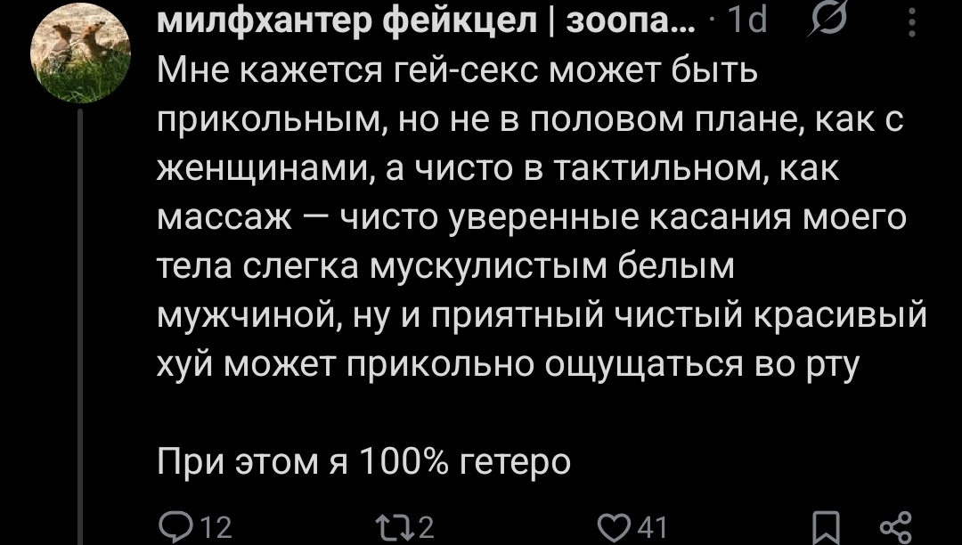 еще много кто в жаббер сьебал. до 19 года пост был, лично для меня, приемлемым, но с оговорками. особенно смотреть на доску в перерыве четырёх лет - очень заметно. тут если и будешь что-то постить хорошее - сочтут за нейросеть или шиза, к слову почему нет желания писать что-то интересное. постинг так-то везде упал. ты терпишь или же делаешь перекат. другого пути нет. честное - абсолютно и бесплатно похуй. ща пойду пить кофе+милка.