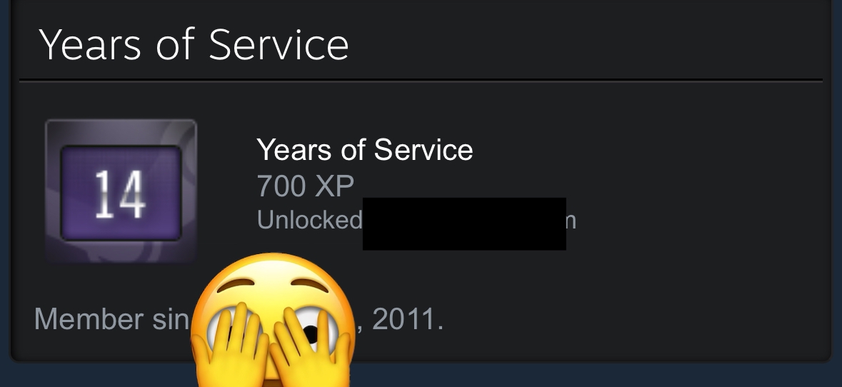 порой слышно от людей, что если бы они могли вернуться в прошлое, то изменили бы что-то, что существенно повлияло бы на их будущее. но если подумать о каких то мелких изменениях, например ответить оппоненту по другому. я бы например не стал заводить новый аккаунт стим. впервые я зарегился в стим в 2012, но весь следующий год не играл. затем в 2013 создал новый акк зачем-то и всю деятельность вел на нем. иногда смотрю на значок выслуги лет и думаю, что мог бы быть на год старше, на год олдфажнее