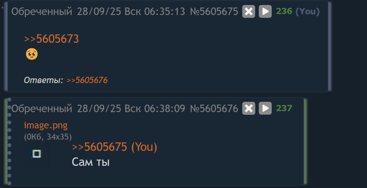 >>5606049 у меня мама с бабушкой орут друг на друга вот примерно в таком же стиле каждые пару дней, стабильно по расписанию; тематическое развитие диалогов проходит одни и те же круги, повторяются одни и те же слова; ничего не меняется, никто не заканчивает порочный круг словесного поноса, всем всё будто бы нравится, а поднимаемые темы не нуждаются в каком-либо завершении >как будто ты потерял близкого друга (не знаю каково это, …) я обычно испытываю глубокое чувство вины и отчаяния, нежели злость, в подобной ситуации. хоть предшествующее этому недолгое отрицание и может сойти за злость, но не за ярость. не знаю