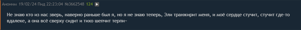 И, если кого волнует, что случилось на днях со мной и Кошкой на его микроборде - вспомните момент из аудиокниги Йона Айвиде Линдквиста - Впусти Меня. Тот момент, где учитель говорил Оскару "не можешь перепрыгнуть через козла - ползи, пол-зи, перелезай", остальное уже детали, и честно сказать, шизо. Нужно уметь дочитывать или же делать это более вкрадчиво, а тот человек у меня просто тихо и спокойно скрыт AdGuard-ом где-то с ноября, ещё до расставания с Рогаткой. Пару раз видел его тред, не выкупил и скрыл (ПКМ > AdGuard антибаннер > блокировать рекламу вручную > заблокировать элемент > ОП-пик > ОК). Так же странно что он впрягся за него, но не за Хору, которого он как бы попытался кинуть и начал сливать инфу, и которого вроде как жалует. Так или иначе - моя гуманитарка имеет пожизненную гарантию и ему, в смысле Фикею, просто нужно попросить меня о покупке с доставкой на ПВЗ чего-либо. Жалко его. Хорошая кошка, смотрящая на меня как на говно. Пусть с ним всё будет хорошо. Ситуёвина мутная. Все неправы. Не важно.
