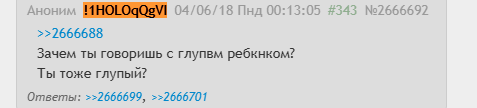 >ты только закапываешь себя на днище. Хотя, казалось бы, куда уж ниже. Напомнило фкея, который прогнал Элю руководствуюсь правилами, после чего прогнал меня руководствуясь... своим ресентиментом xD Закапал себя так глубоко, что уже никто его не откапает, и сам он со дна не вылезет. Ну ничего, зато у него есть десяток скриншотов с его обидчиком. Пущай сидит годами, смотрит и подпитывает свой ресентимент.