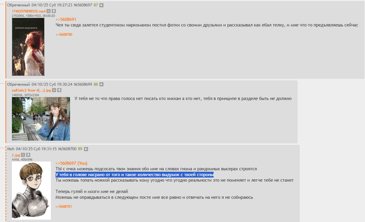 А постинг холофага здесь который раньше был это >>5608813 вот на второй скрине ссылка на тред, и там подряд его посты из архивача копировали с фотками. Короче он просто объебывался феном и здесь вайпал и всех хуесосил + камхорил