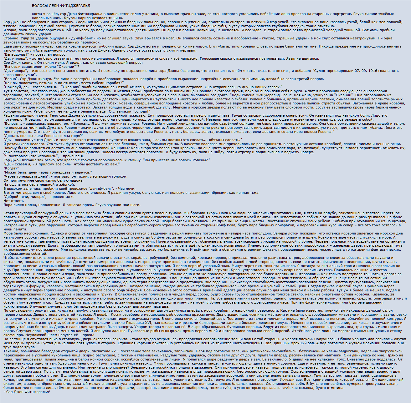 >Аллан По Вот По я бы послушал. Слог у него очень тяжёлый для восприятия. Скорее всего, виноватым тут можно считать корявый перевод и тот факт, что автор жил в 19-ом веке.