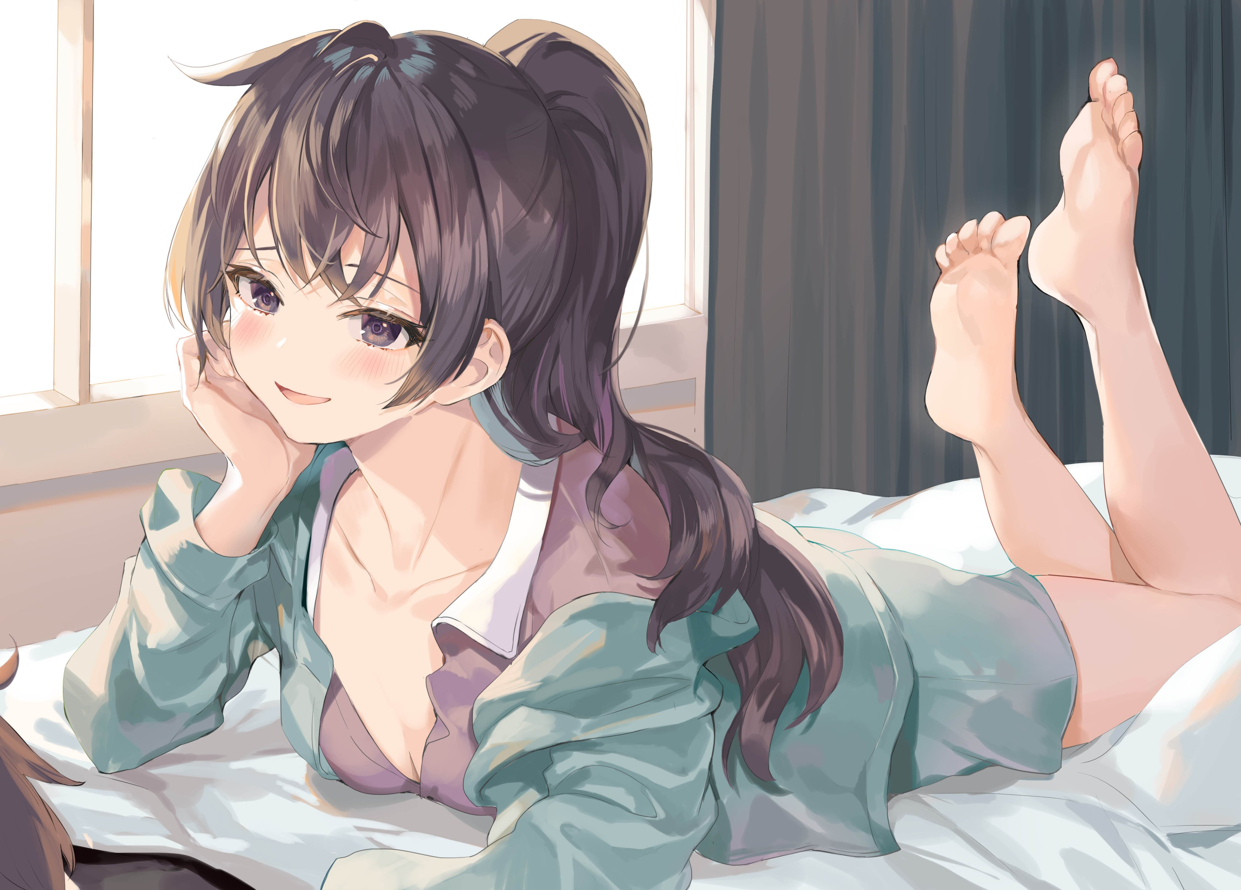 lying on bed, from above, dynamic pose, dynamic composition, dynamic view, dutch angle, atmospheric perspective,