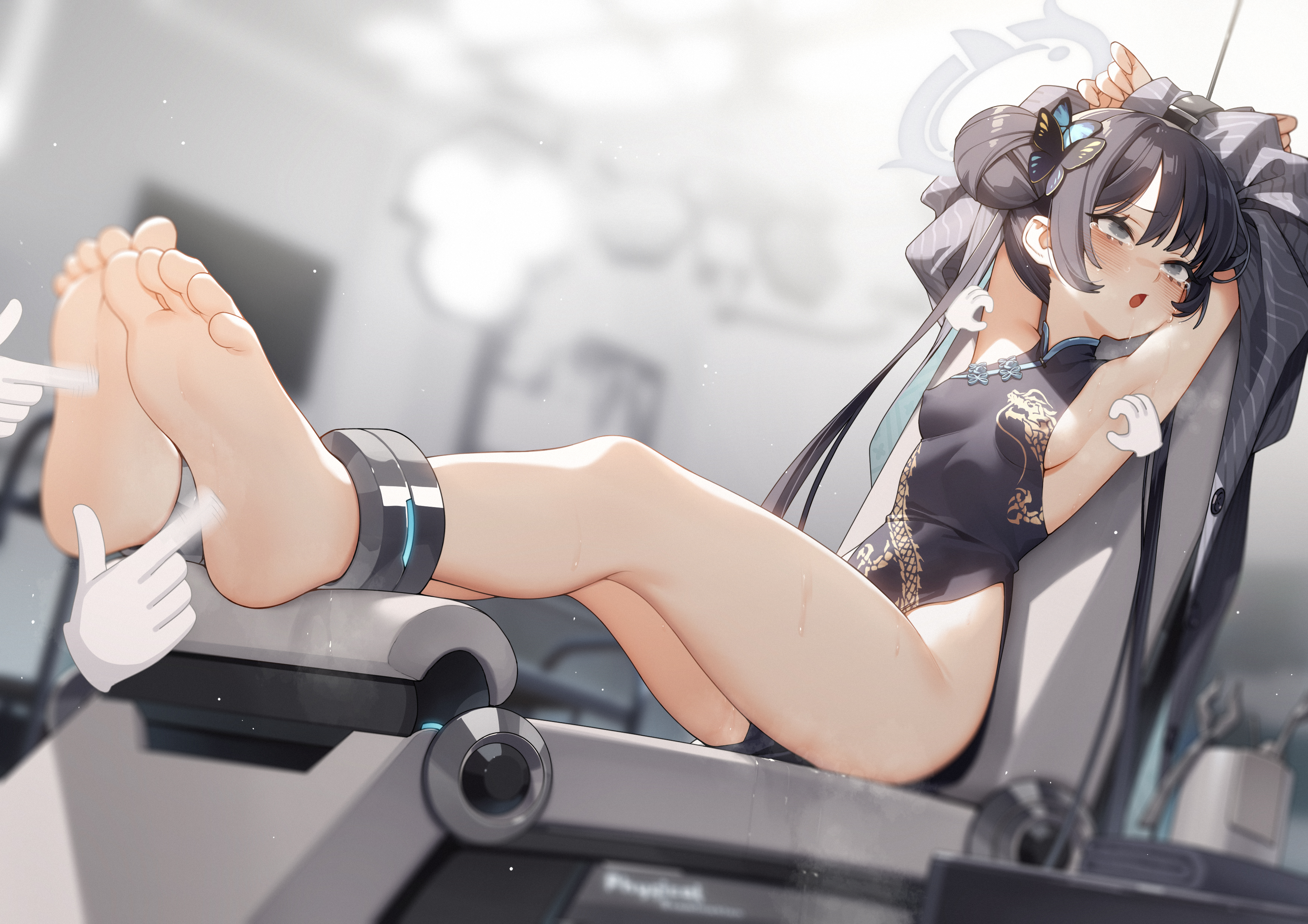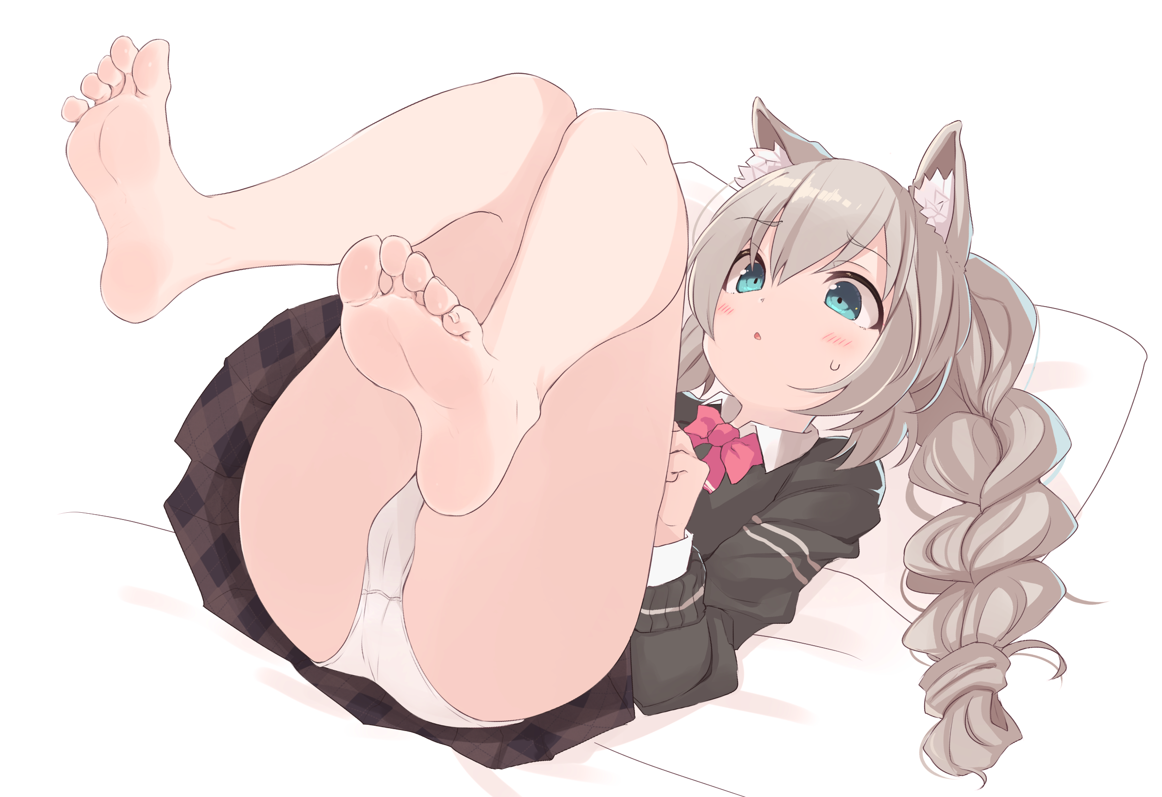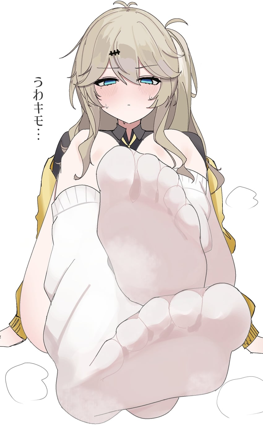 blush, shy, pleasure, closed mouth, look to the side, hot breath, (steam, sweat, smell), nude, small chest, small nipples, skinny, cum on feet, 5 toes on each foot, (feet focus, legs up, close-up feet, feet very close to the viewer, raised to the viewer), (spread toes, smelly feet, wet armpits), cute pussy, full body,
