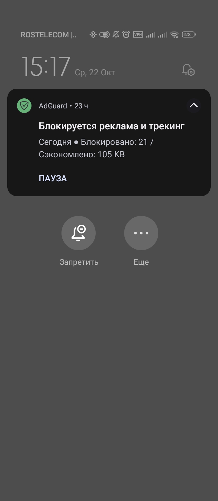 >>5621121 Долгий тап на приложение или на уведомление в шторке, там будут настройки всплывающих уведомлений, и могу отдать свой AdGuard чтобы в браузере баннеры глаза не мозолили, без этого уже, как без рук.