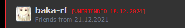 >>5621726 Так я и не вру, я трушный хикки, который максимально изолирован от общества и социума, и который не хочет социализироваться и заводить друзьяшек/тян, а кто там у меня во френдах, я не знаю, это со времен тф2 добавлялись. Я конечно понимаю, что ты нормис и судишь по себе, для тебя френд в стиме - друг с которым ты обязательно общаешься. Но в реальности это не так. Например, принял приглашение в 2011 году после катки в тф2 и забыл о существовании, так ни разу и не пообщались, а удалять стесняешься - неловко. Классическая история. Ты новичок в стиме, я прав?