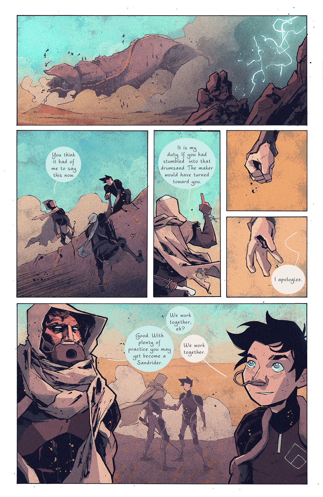 Арракис – планета большая, по ней можно всю жизнь бродить, пересыпая черную и золотую пыль дня и ночи в песочных часах вечности. Быть может, он бы встретил одного из слепых повелителей вселенной, утонув в глубоком, как подземное озеро, сознании. Быть может, он бы наткнулся на один из сиетчей, и был бы принят. Хотя, скорее всего, у одного из представителей Вольного народа просто добавилось бы водяных колец. Может, отказал бы дистикомб. Может быть, очередная буря застала бы его вдали от укрытия, не оставив для солнца ничего, даже раздробленных костей...