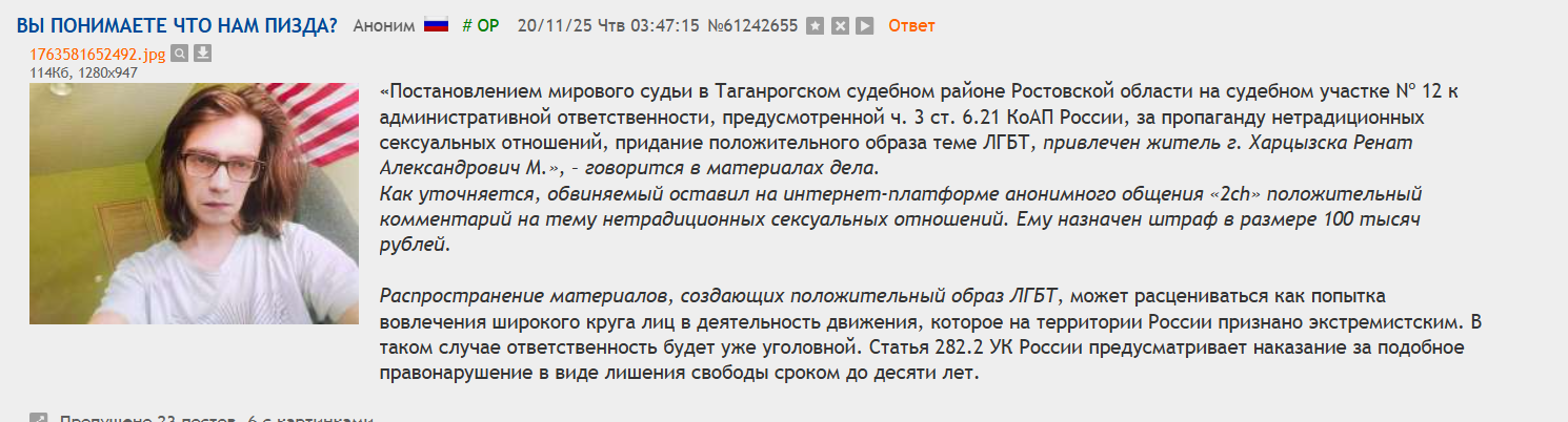 смешного ничего тут нет, от безнаказанности раздел превратился в меня тут назвали легендарным чмом недавно и только около недели назад дошел весь контекст написаной тогда фразы с намеком.