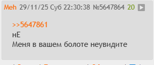 >>5647772 >Такие мне в любом случае не симпатичны. Поэтому ты их тут кормишь вниманием и одобряешь травлю хикикомори, верим. >и это будет тут воспринято как простое "ему нечего сказать" Не знал что тут есть общепринятые нормы, прямо как в обществе или, еще лучше, конфе. >а в той же личке ты обязан что-то ответить Не обязан, это ты себе придумал устоявшую норму в голове или это навязано кем то. >иначе некрасиво и вообще обидится человек.. А тут не обидится? Тут такие же аватарки сидят которых если ты заигноришь они обидятся, или это другое? Еще раз говорю, ты себе все эти моральные устои придумал в голове, зачем ты оправдываешься непонятно, ты видимо слишком помешан на своем статусе в интернете и пытаешься оправдаться таким образом.