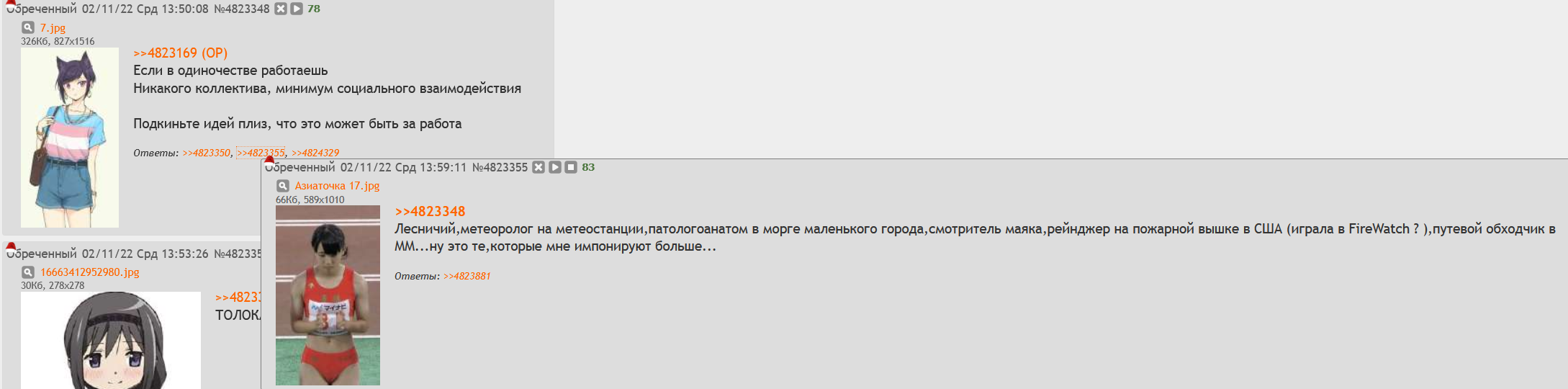 >>5662546 Да вот это я написал. Было интересно че за люди из моего города сидят на двачах. Параллельно ещё несколько тредов было открыто. Хотел вообще в другой тред написать... >>5662548 Ну там какие то сходочники сидят.