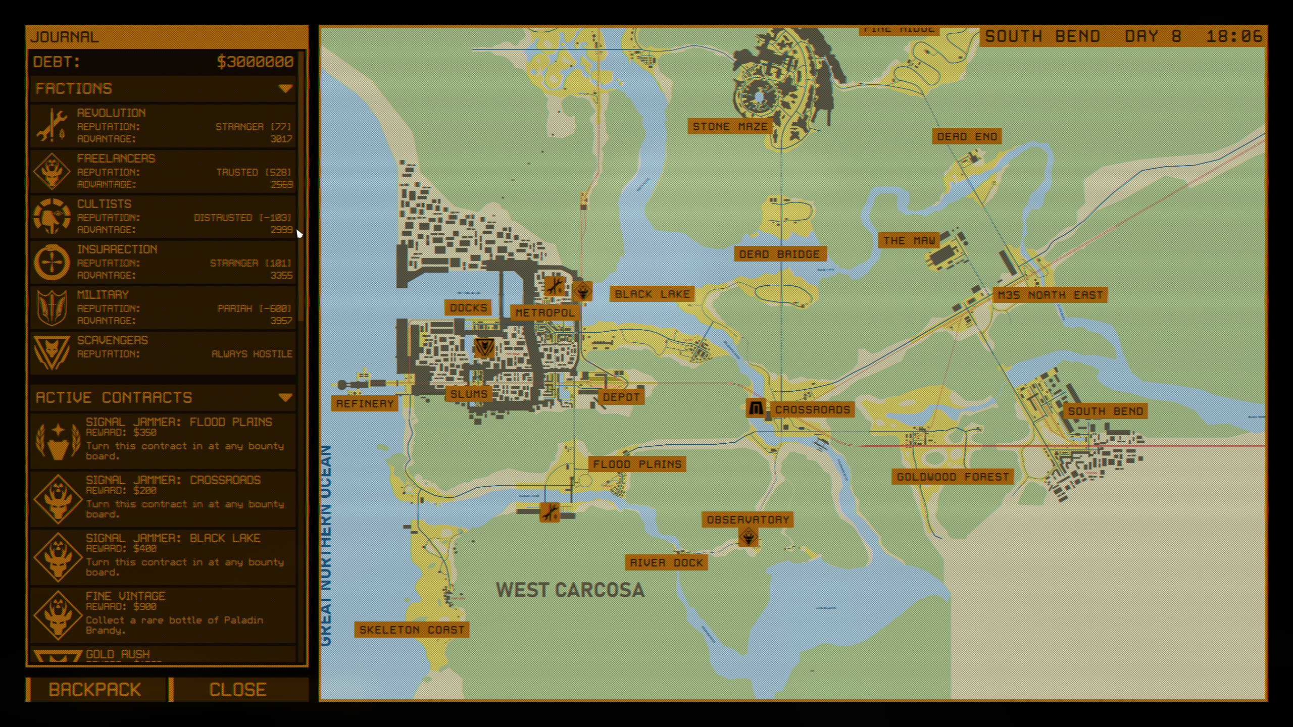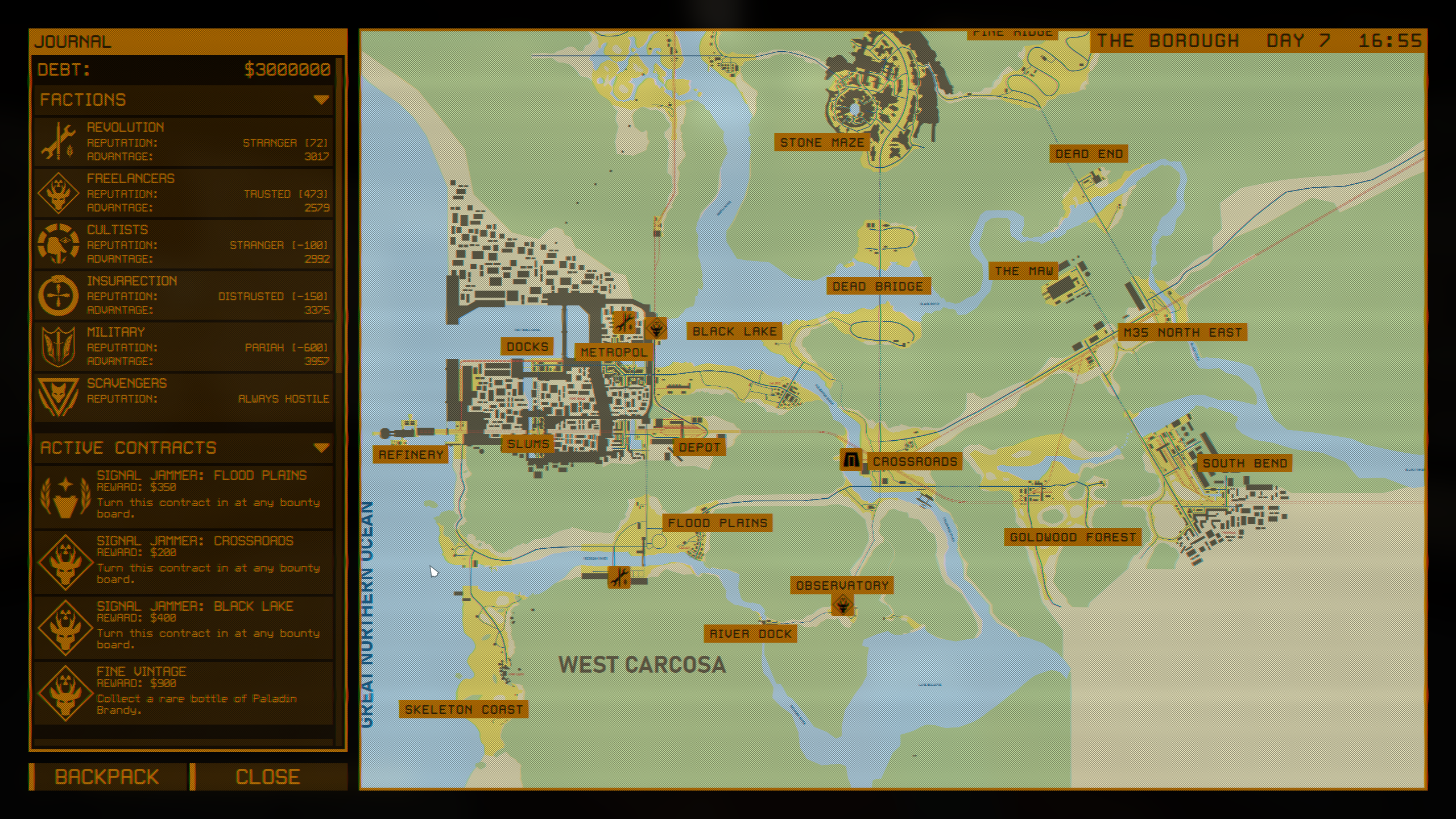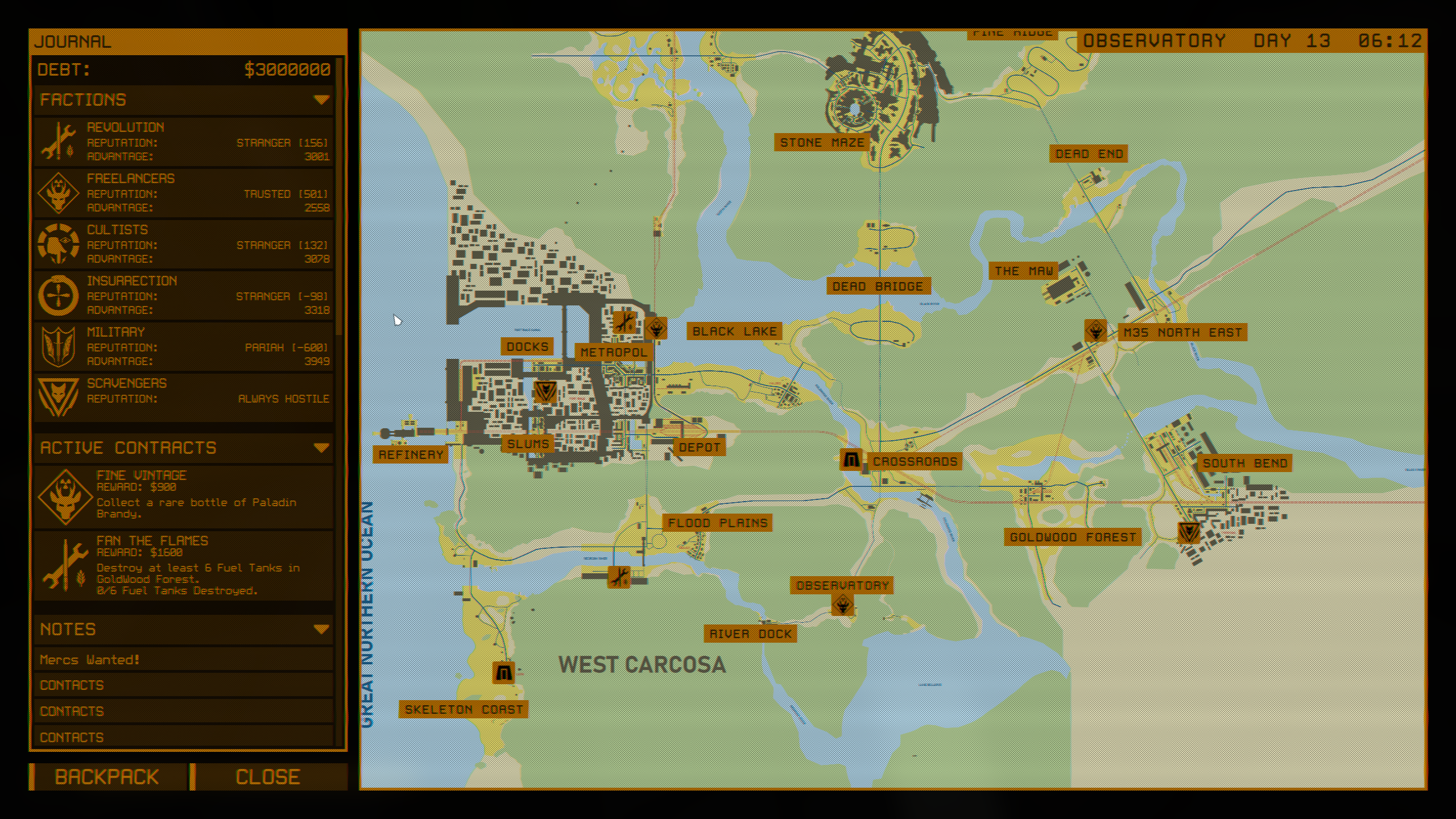 на западе, даже чут-чут на севере пипец насрано патрулями NFTA а они сильно враги, поможет разве что шайтан-маскировка, которой нет