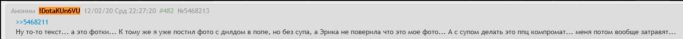 У дилдокера уже есть полноценный компромат на Дотачмо. Ему достаточно постить эти скрины в каждый тред, как Дотачмо не выдержит и сам выдавится из раздела обратно в soc или где этот нормиблядок там сидел.