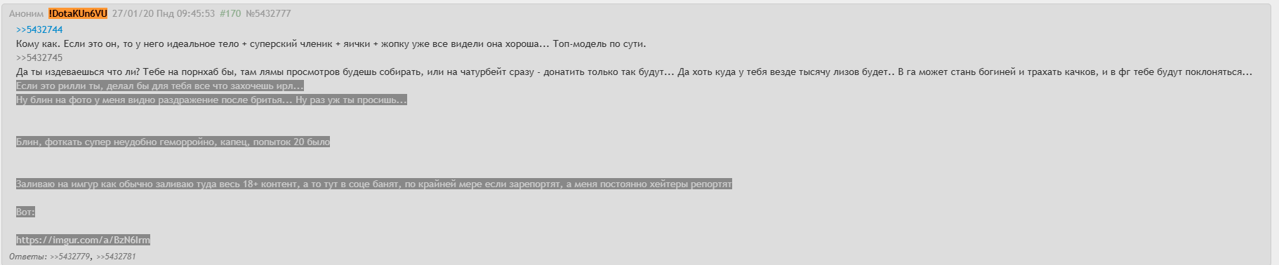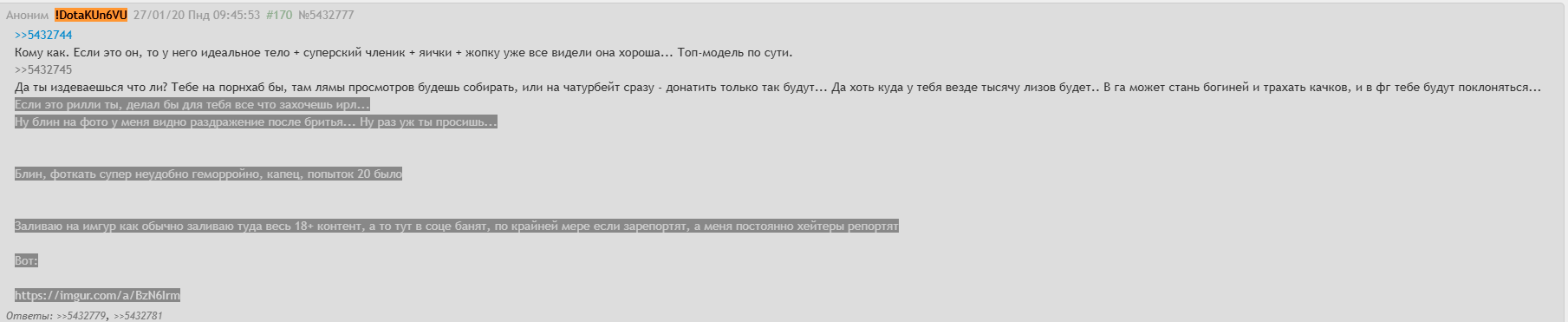 Сидит, оправдывается на 1000 постов, просто не хочет признавать что он в 2020, 2017 году скидывал фотки своего ебала, жопы, писал как няшкался с парнем. Я вот верю в то, что он действительно шизофреник больной, которому уже ничего не поможет.
