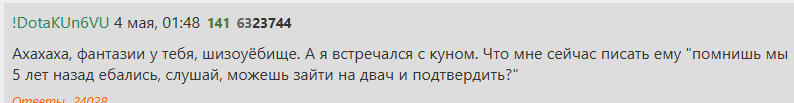 >Сижу 13 лет дома >Я хиккиборцун >Олды знают олды помнят >Мой дом >в рф не постил жопу а вдругом разделе постил значит хикка Чето заклинило на одном и том же шизофреника Дотачмо, видимо уже сорвало крышу ему.