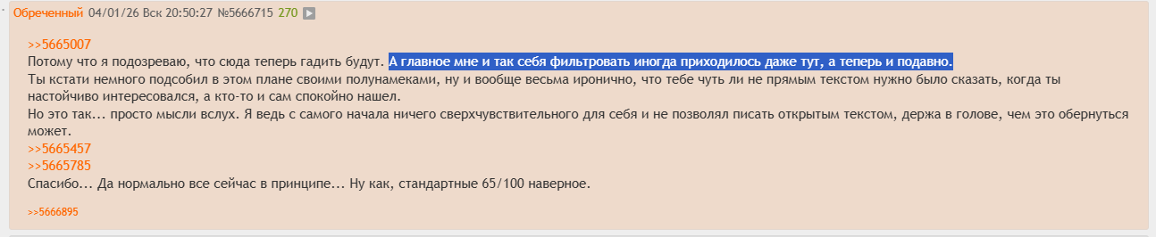 Единственное, задумываюсь, что сюда какие-то новые аноны действительно могут приходить, и думать, что действительно найдут помощь. И мне не нравится, что они тут будут задерживаться и впитывать это дерьмо.