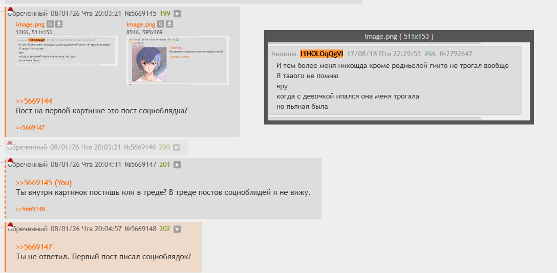 >>5668934 >Это ты перекатил же. Перекатываю всегда либо нейтральными пикчами, либо с кунами, а не скриншотами постов своих протыкателей. Психопат пользуется куклоскриптом и меняет названия картинок. То полностью удаляет, то оставляет .jpg, то просто image.png или "image".