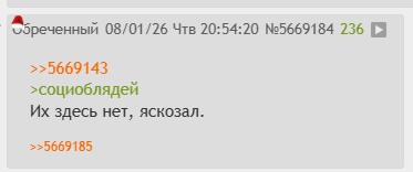 >>5669348 У нынешних, современных "борцов с социками" вайб инфернальных психопатов, которым нравится измываться над людьми и которые используют хикки-повестку чтобы маскировать свое желание расправляться с былыми врагами. Вайб быдла и мерзотных ублюдков и мразей. Они не постят здесь ничего о себе и своем быте, своей "хикки" жизни, только засирают других. По-твоему любой щитпостер и засеруха которая прячется за повесткой хикки-борцунов это автоматически хикки? Нет, это не так, но это то, чего они хотят чтобы все так думали. Лже-хикки.