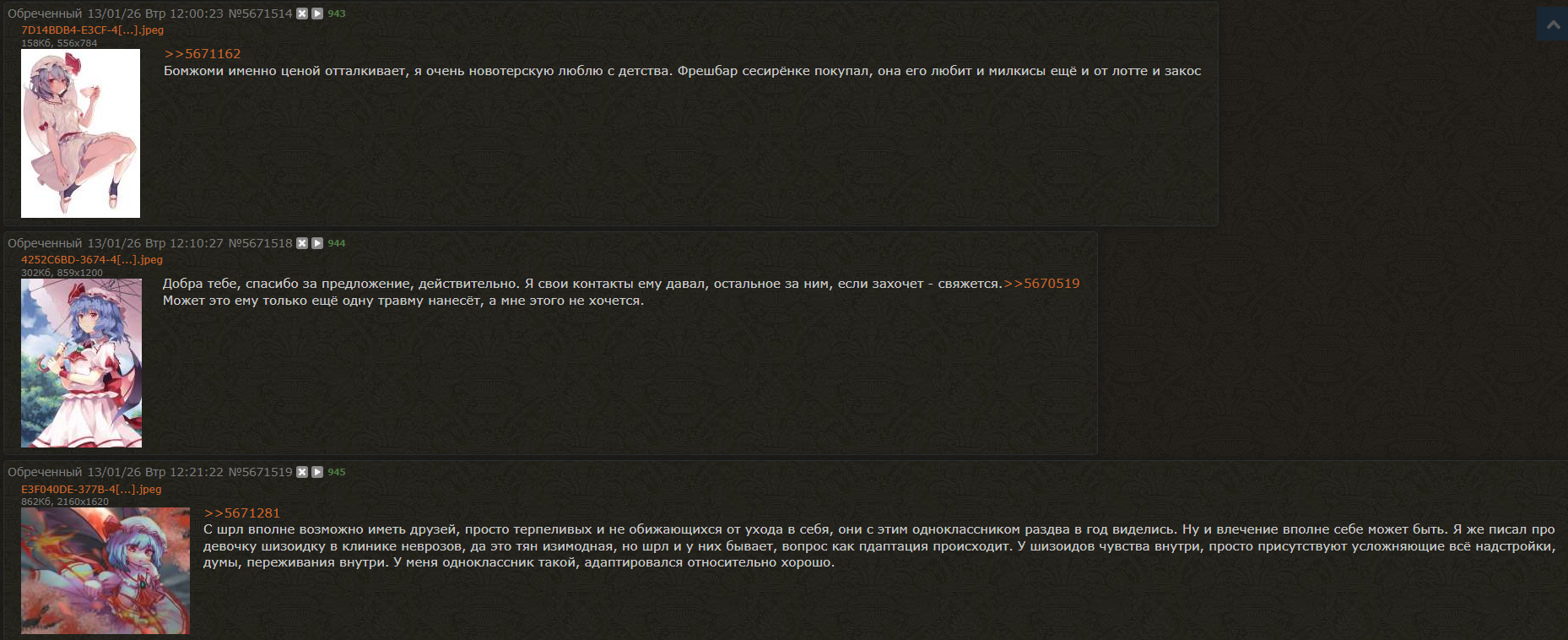 >>5672534 Ну вот где ты был только сегодня, я там не могу постить.. >>5672538 Не знаю, просто не хочется чтобы ты себе психику ломал (доламывал) в подобном токсичном месте.. Хотя конечно ты вроде как закалённый в этом плане..