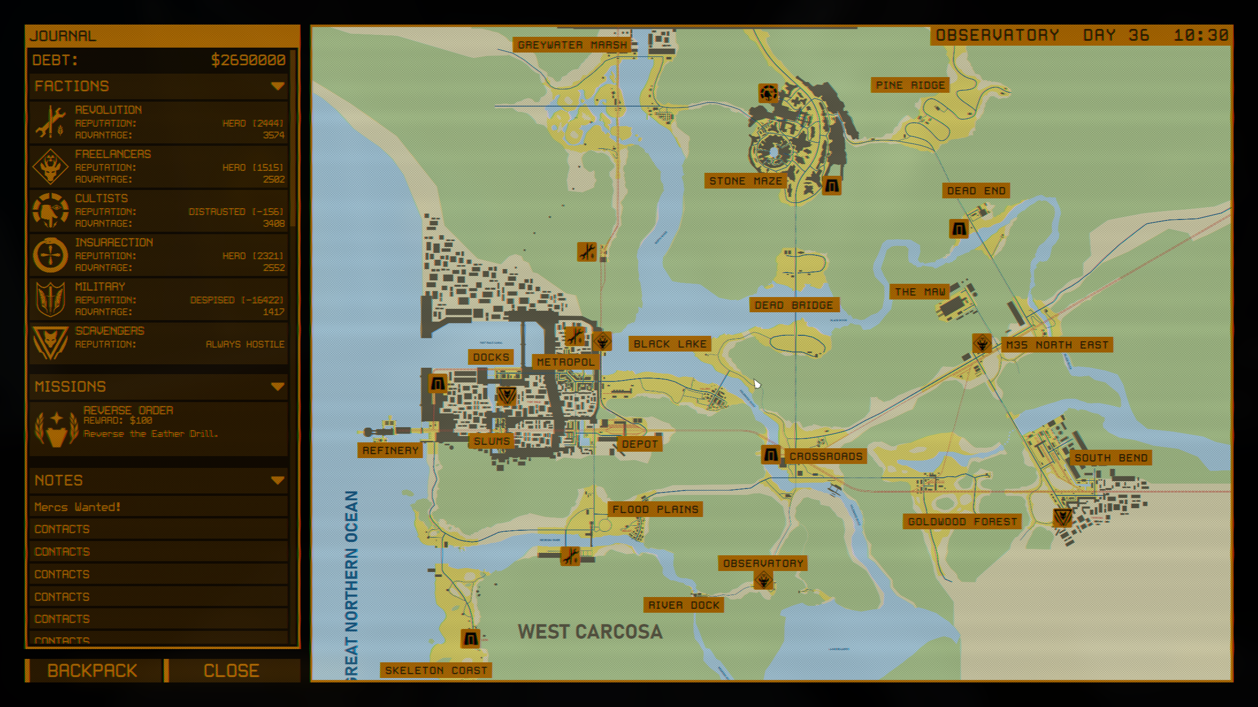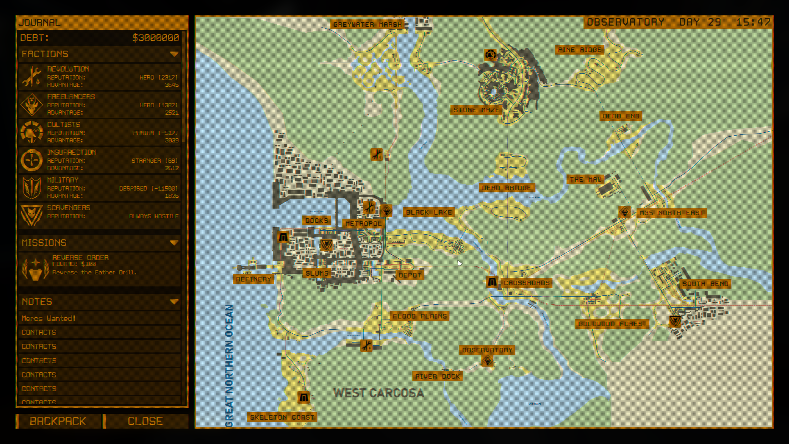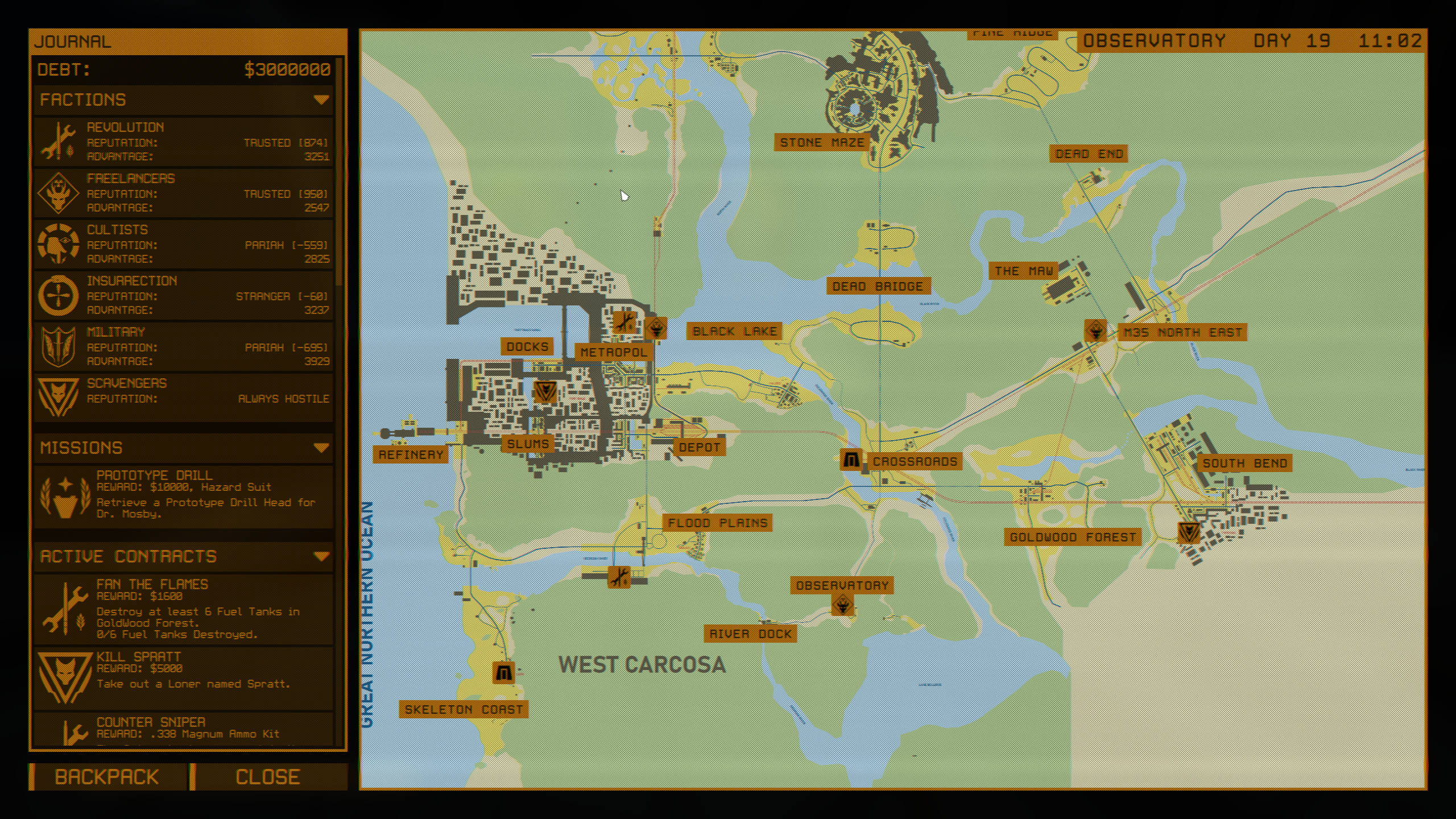 из-за моего саботажа фракция военных пострадала совсем сильно: их силы уменьшились в 2 раза и они слабее даже вольных сталкеров... я думаю они максимум могут патрулировать территории рядом с базой на "мертвом мосте" и на буровой установке в порту, хоть там реактор и бахнул. мб еще немного отрядов будет в центре