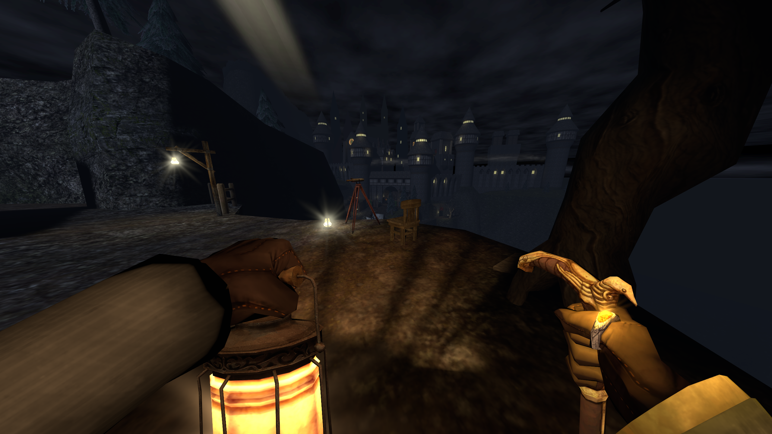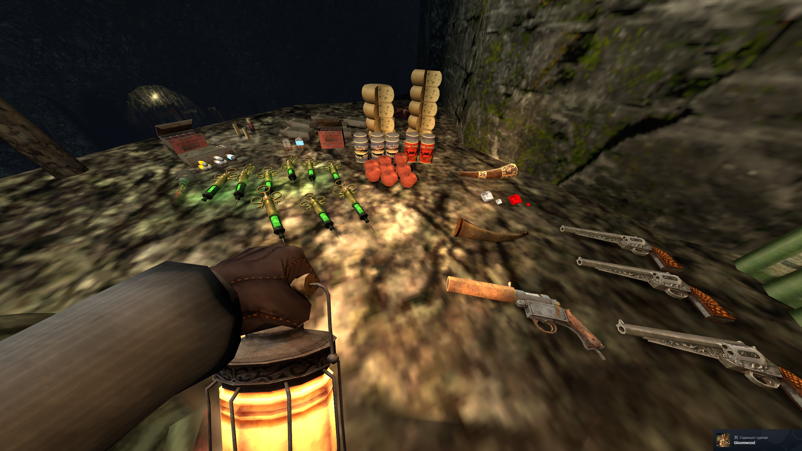 на скринах - моя "маленькая нычка" на склоне после таверны, рядом с городскими вратами и в небольшом удалении от Маяка - там должна быть лаборатория, провизия и спальное место