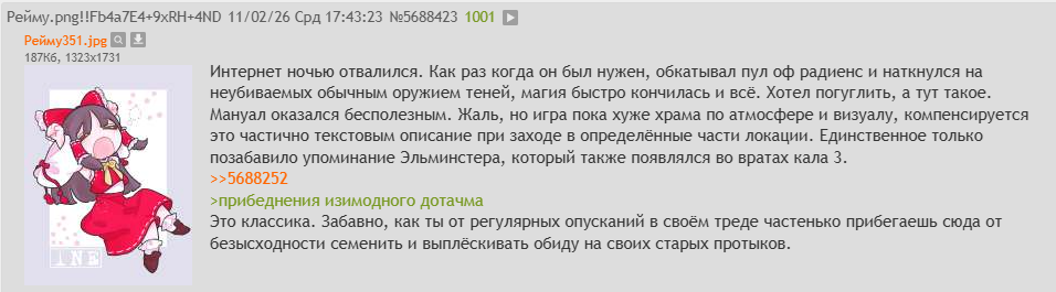 @monkey Сюда залетел постер по прозвищу "Дотакун" из раздела /soc/ с трипкодом !FemBoyJxQI и начал травить хикикомори за анонимность. Что делать? Репортни модерам за травлю и нарушение правил убежища, они такие нормисные вылазки быстро чистят.