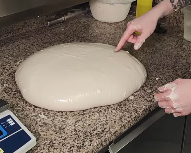 мда, нашел настоящий рецептау пиццы из муки 00 туда вообще масло практически не добавляется никакое, чайная ложка на 500гр муки, абалдеть. Сравните например с 40гр масла с тем же количеством муки. И вместо бабушкиных замесов 5минуток, они теста дрочат все 20мин, вмешивая последовательно ингридиенты особым образом. А после расстойки 2ое суток, его аккуратненько выкладывают из миски почти не трогая ни вкоем разе, чтобы газ лишний случайно не выдавить и все аккуратненько от центра формируют борта, потом пару круговых движений и форма пицц готова, они ее не насилуют, не катают, само тесто пластичное