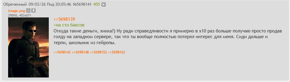 >>5698196 > но они не пишут об этом постоянно, Не ври. "Они" вообще об этом не пишут. Пишут только о других постерах, засирают всех, хоть бы раз рассказали как живут, какие у них проблемы и т.д. Но у того изимодника который 1к баксов поднимает в игре явно никаких проблем нет.