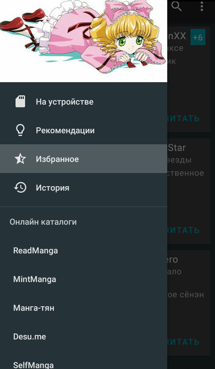 >>136776 OpenManga. лучшая из читалок что я видел, можно сохранять картинки в галерею, скачивать чтоб читать потом без инета, импортировать свою мангу со сторонних ресурсов, экспортировать, весит почти 3 мб2,9Мб, имеется 14 каталогов, в том числе и английскиетолько некоторые неработают. можно менять тему, ставить закладки, есть рекомендации(незнаю только как они работают, ну да ладно), можно поставить свою картинку для увлажнения души как на пике. И самый главный плюс - можно привязать учётную запись для восстановления истории, избранного при потере или смене ведра.