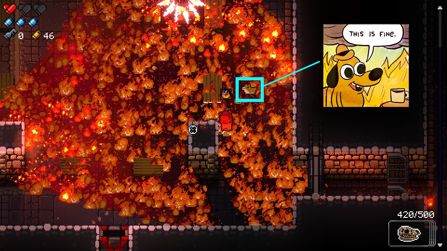 Enter the Gungeon - игра жанра “пулевая завеса в подземелье”, в которой ищущие спасения неудачники стреляют, грабят, перекатываются и опрокидывают столы, чтобы добраться до легендарного сокровища Оружелья: оружия, которое может убить прошлое.