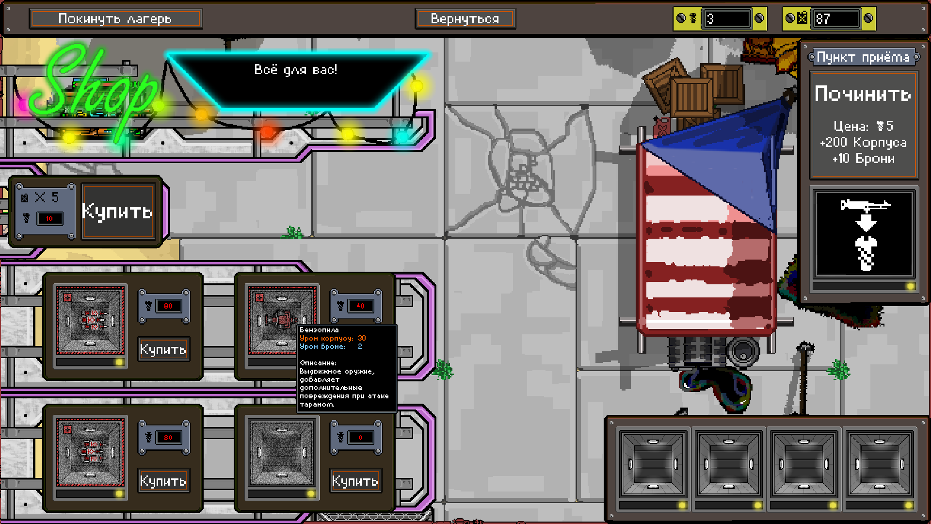 >>28490 У начального персонажа просто мало ХП и он не держит постоянный дамаг. Совсем не подходит для игры при увеличении сложности от времени. Не для новичка. Надо на паре карт открыть новых персов и сразу станет легче. И не надо шебуршиться по всем щелям. Сразу ищешь портал босса, вызываешь его, убиваешь, после чего монстры прекращают спавниться. Чистишь и сразу в портал прыгаешь. После 3 или 5 карт, не помню, ты можешь в портале прожать другую букву и попасть на финальный уровень. Там идешь к боссу и проходишь игру. Для меня самый простой - мужик со щитом и дробовиком.