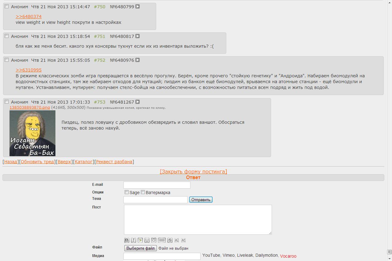 >>4522 Ясно, тогда хрен с ним. Импульсный вчера сделал, поставил спереди, тогда такой же сделаю назад. Сделал выжившего в лесной хижине так у него изначально сет выживальщика + халявный арбалет лол. Не понравился дизайн домика, какой-то квадрат с кладовкой снаружи в которой 3-4 замбака было + набежали мрази из леса, собака, лось и медведь. Первого перса ушатали, начал второго и оказался там же лол. Спиздил печку и убежал на ферму что на юге оказалась, там и живу. Охочусь на кайотов, лис и рысей, воды полно. Нашел гитару, упоролся самогонкой и начал играть как тут в комнату ввалились зомби, оказалось что я забыл проверить ангар, разъебали его ппц.