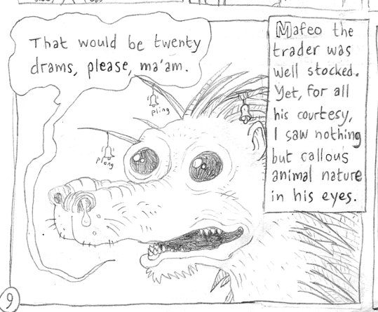 Интересная тема с репутацией. Прямо у начальной деревни попадается всякое барахло с бонусами к репе, пока его носишь. На первый взгляд там репутация к каким-то бомжам, которые тебе сейчас не нужны. Например, к птицам - птицы в Куде просто самые обиженные создания. Но. Внезапно есть кольца, перманентно заляпанные кровью, которые дают по +400 к бабуинам. Бабуинов вокруг начальной деревни целые полчища и почти все они кидаются камнями, как из пулемета, и бегают вокруг тебя. Со стаей бабуинов невозможно иметь дело, только бежать. Так вот с двумя кольцами ты берешь кап в 500 репутации и бабуины становятся дружественными. Это значит, что если кто-то враждебен тебе, бабуины забрасывают его камнями, даже не спрашивая. Более того, с ними можно торговать, хоть они и не разваривают - даже выменять диски с технологиями можно. Причем дружественны даже уники. В начальных зонах есть и другие твари, к которым есть репутационные предметы - ящерицы и птицы упомянутые, но их предметы обычно в один слот, типа баклер или лук, поэтому их нельзя стакнуть до друзей на лету. И у них нет коварного поведения, как у бабуинов. Между тем понятно, почему один медведь-альбинос предлагает вырезать храм механистов в Батесде по сюжету, а другой говорит, что может быть и иной путь. Просто смотришь на одного из 2х верховных жрецов механистов и видишь, за что на него медведи зуб точат. Еще мне понравилось антуражное приглашение какого-то кентавра-изгоя в Ходульке Шестого Дня. Пожуй, мол, коры, приятель и послушай, что я скажу, дело есть. Вот только вместе с диалогом он дает не кору, а йондеркейн, который если пожевать, телепортируешься в случайное место на карте тут же. Такой вот прикол. А кора вообще есть - кора ведьминого дерева. Жуешь на 50 ХП, но получаешь галлюцинации.