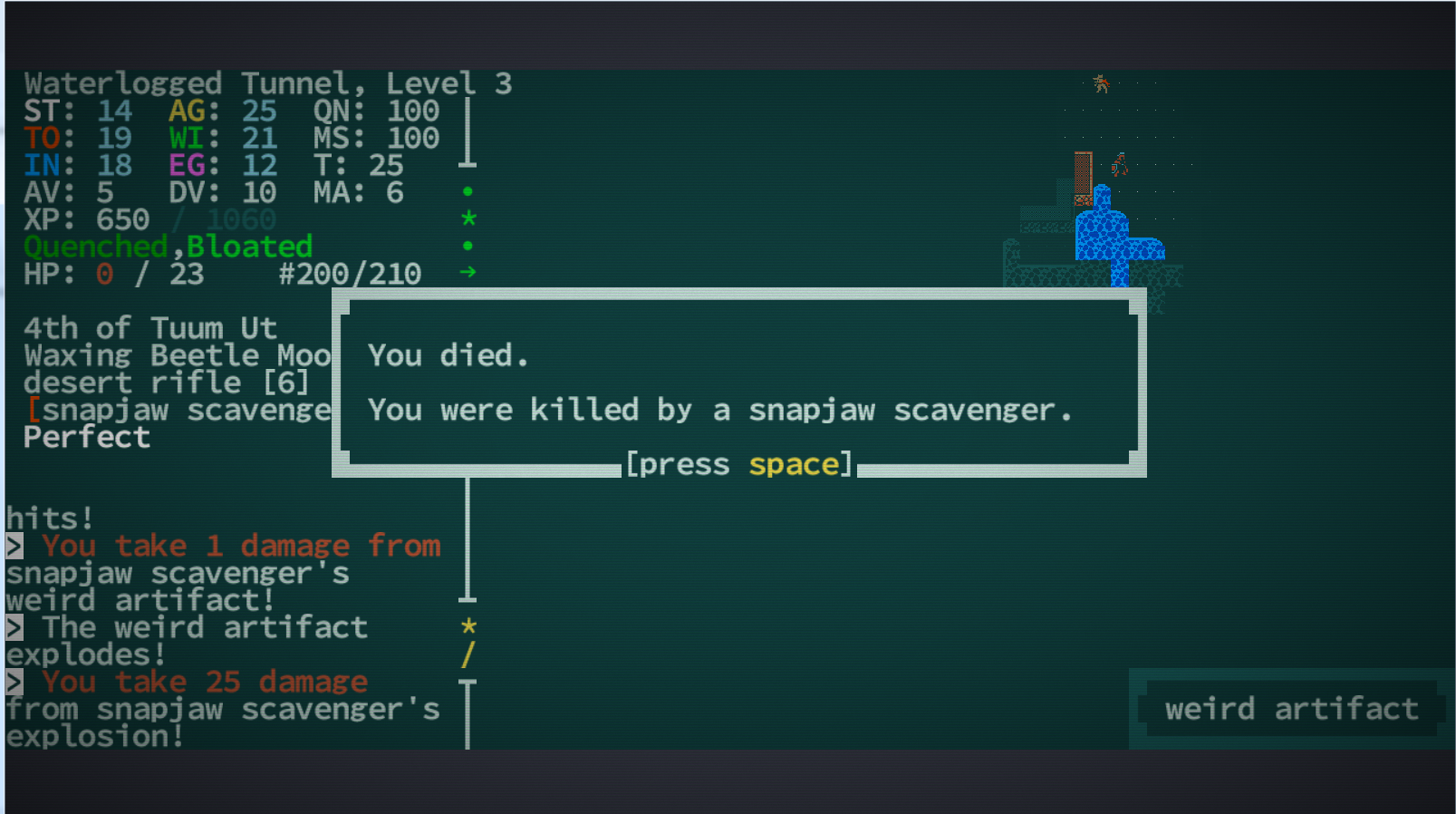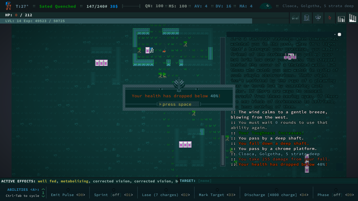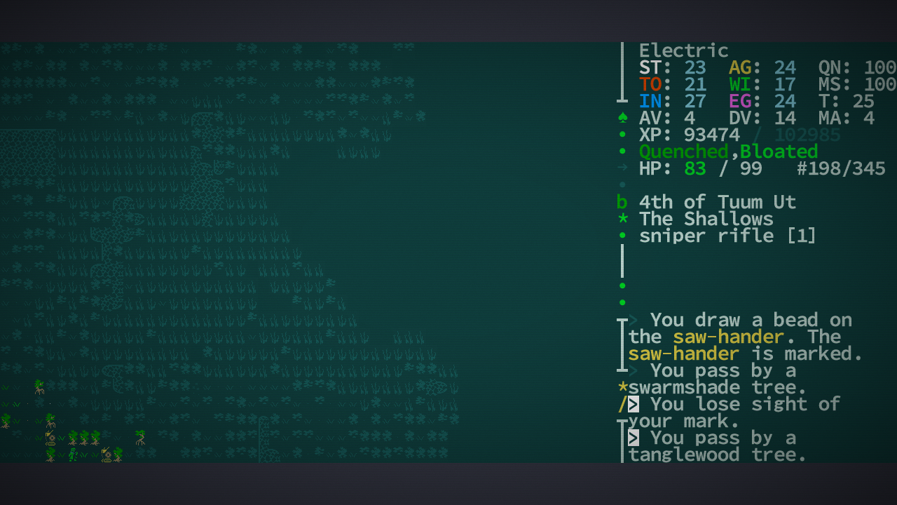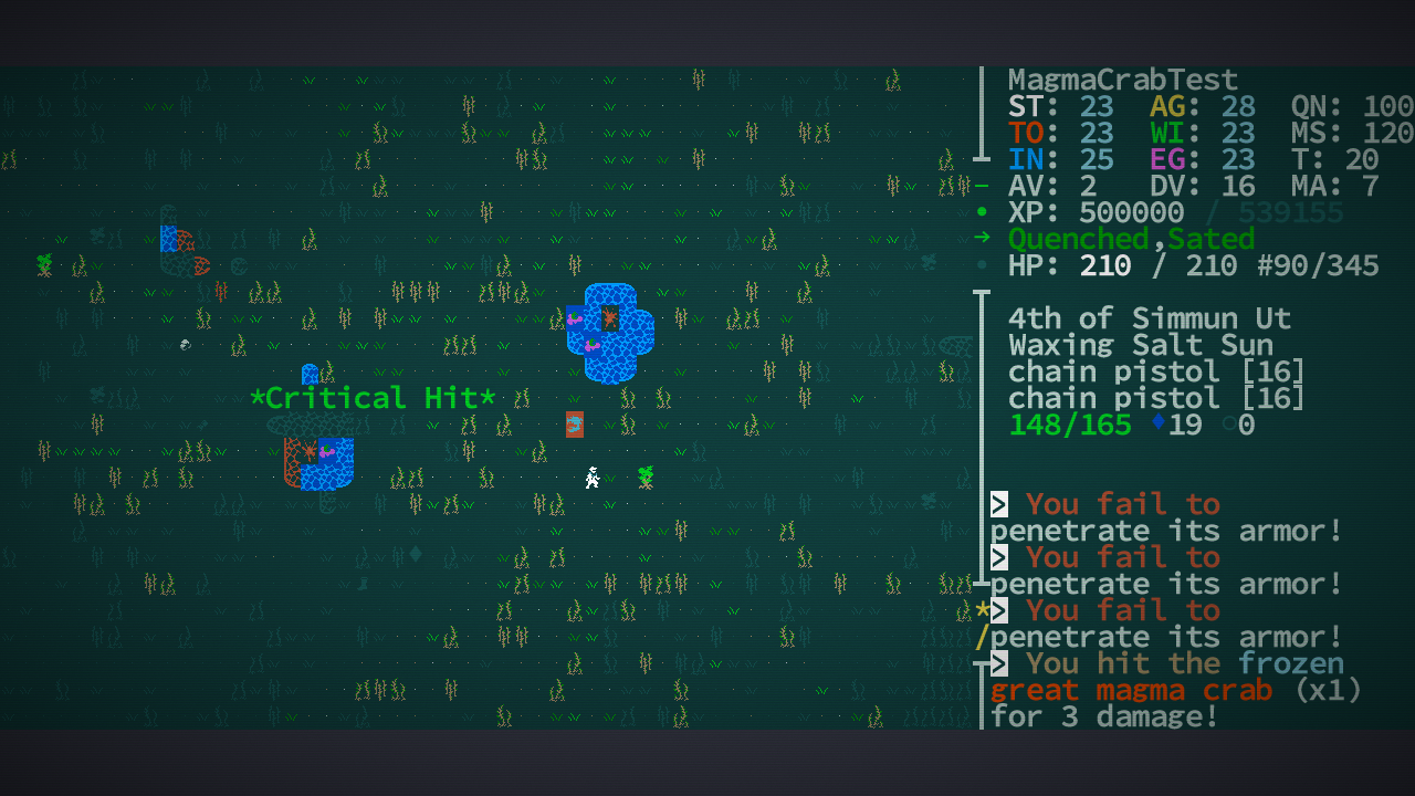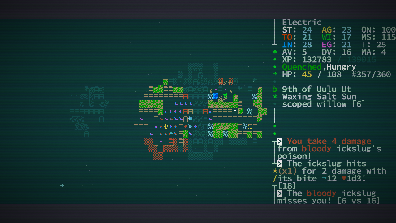 Почему-то, в последнее время у рогаликов сеттинги лучше получаются, чем у классических рпг. Хотел вот возвращения сай-фая+фентези+немного пост-апока, как было в старых M&M - нате Caves of Qud. Жалко, что жопа у меня для рогаликов слабая.