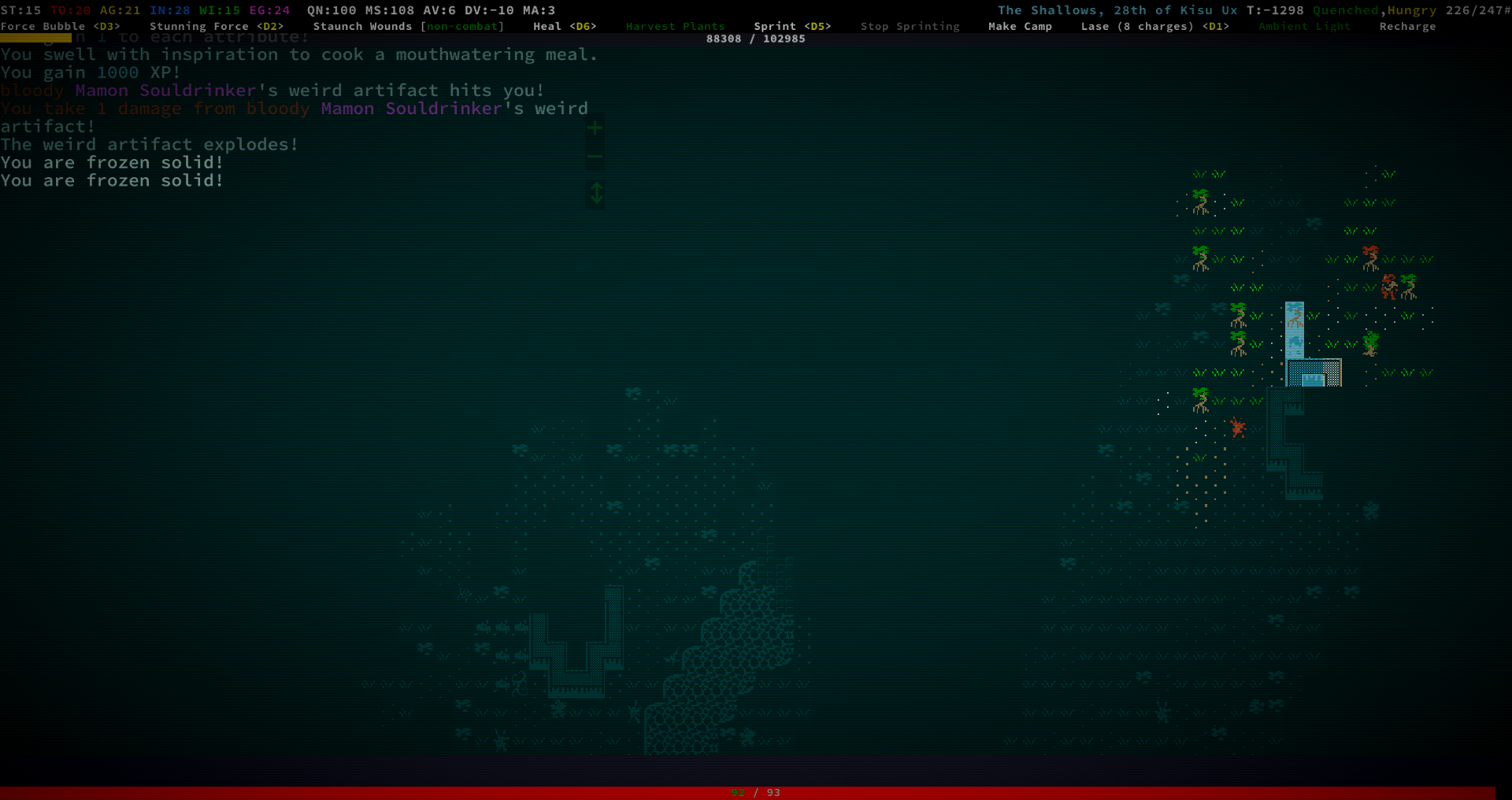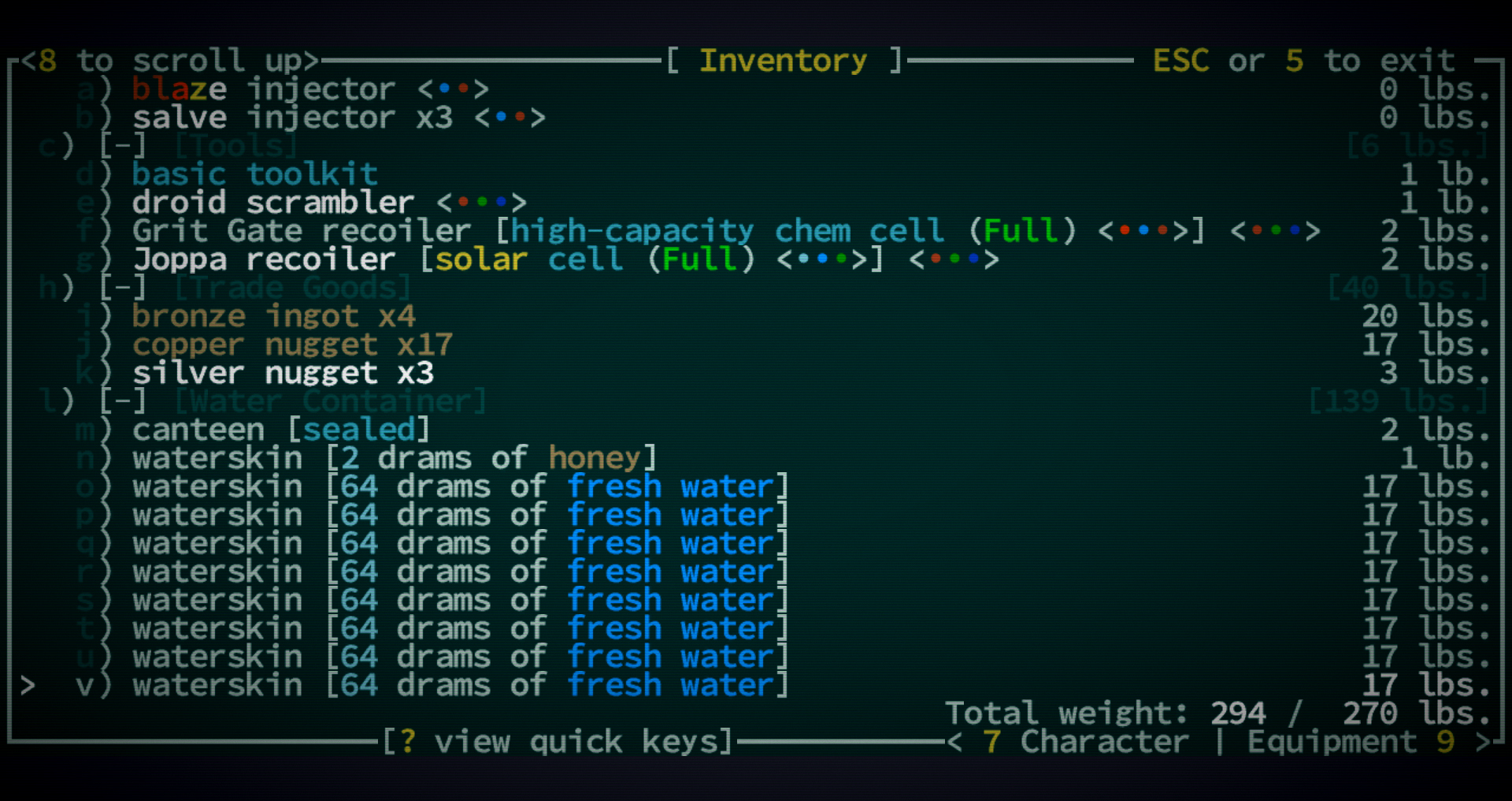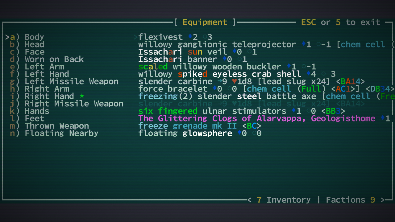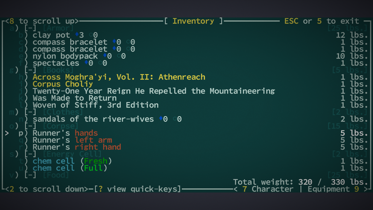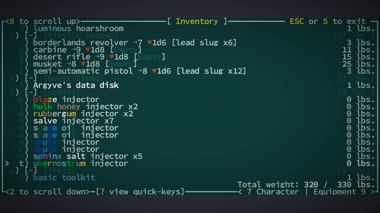 Вообще я вот ещё Elona+ гоняю, так там настолько удобней интерфейс и управление. Здесь чтобы выбросить, надо зайти в инвентарь, потом выбрать вещь, потом нажать d.
