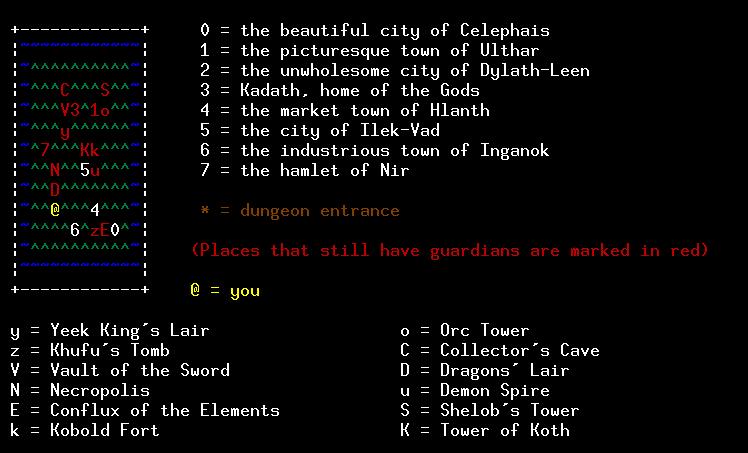ну тогда уж еще и с другими городами и генерируемой местностью впрочем это не сильно меняет ситуацию, просто расположение разное лично мне вставило когда я шел-шел и нашел башню в пустоши cthangband весьма неплох чтобы поугорать некоторое время плюс ктулху-пантеон, он чего-то стоит, но правда только для уважающих Мифы