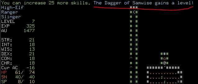 Штоу? Как это кинжал получил уровень? Иногда тут с рандомных квестов выпадают действительно странные штуки. >>11410 Да точки ерунда, больше напрягает что экран центрирован на @ и при движении еле заметно, но все же лагает.