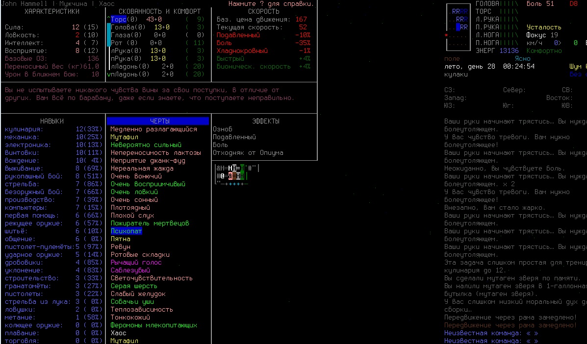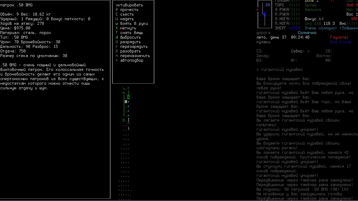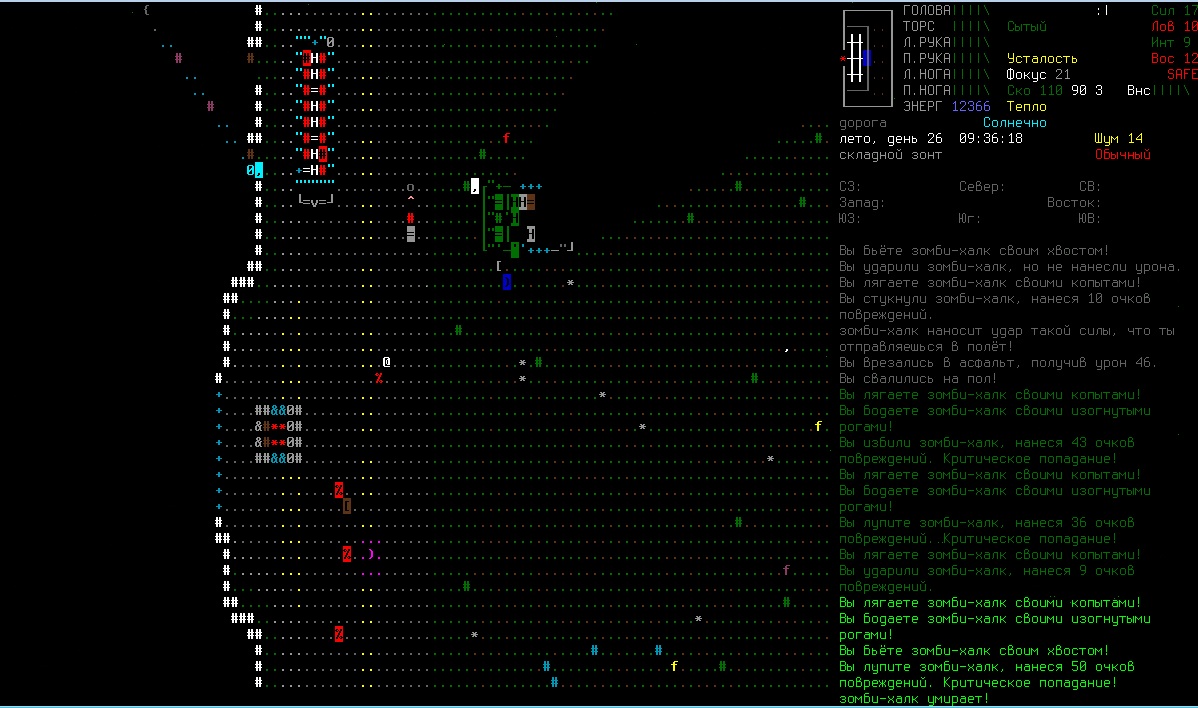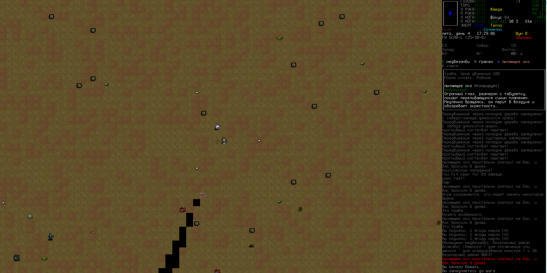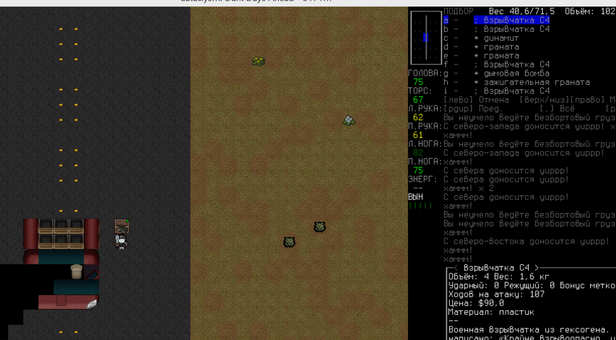 Сataclysm DDA -- это уникальный рогалик включающий в себя нестандартный сеттинг, полностью открытый мир, широкую систему крафта, строительства и конструирования автомобилей. Окапываемся ямами с точёными пиками в лесном домике, коллекционируем музыкальные инструменты в своём особняке, строим слизедвигатели, приручаем котиков, бреемся и стрижёмся. Отыгрываем фуррей, слизней, жрём странные ягоды, варим динамит из мыла, пытаемся убежать от предаторов. Теперь со вкусом фунгицидного газа, танков и необучаемости!