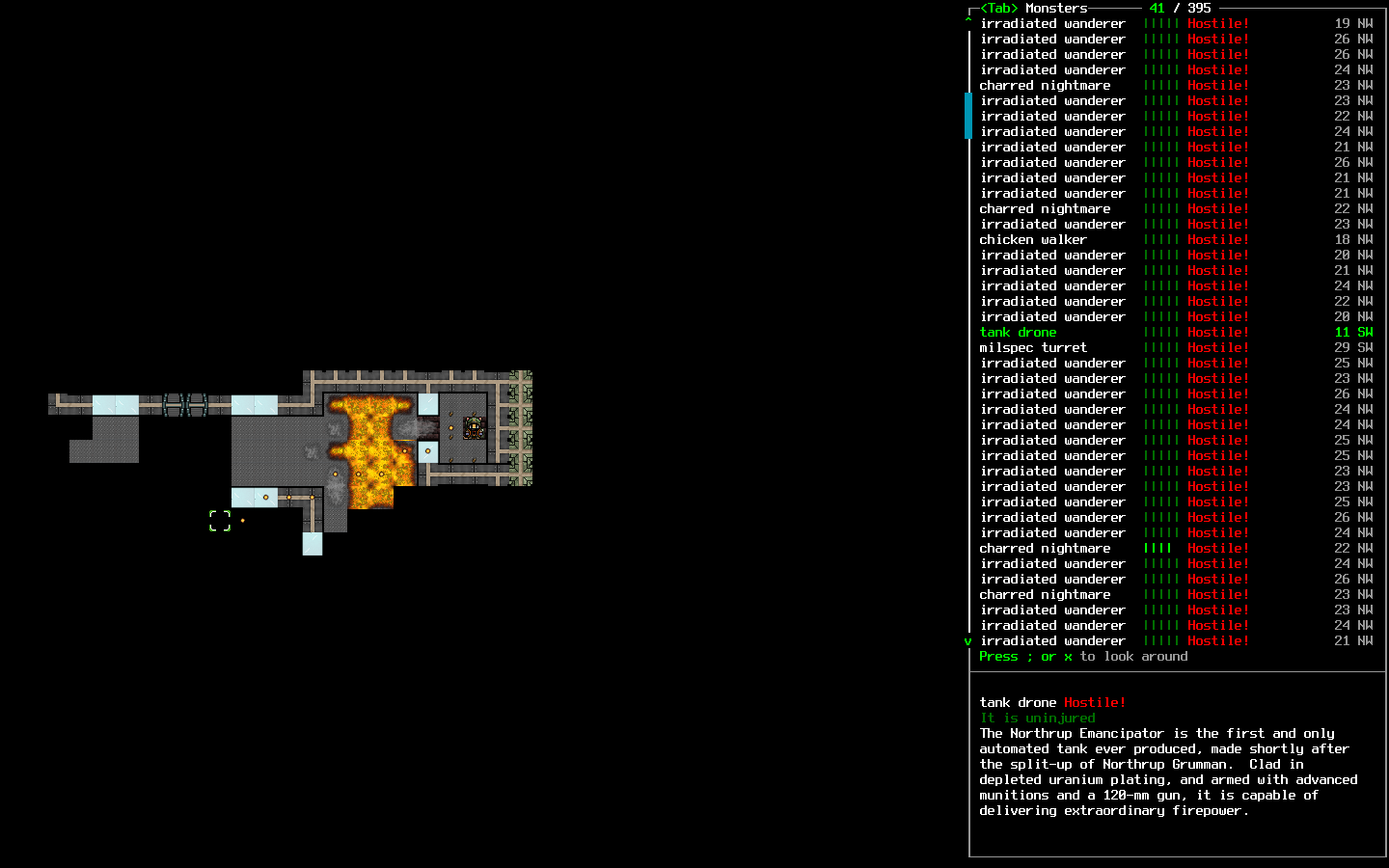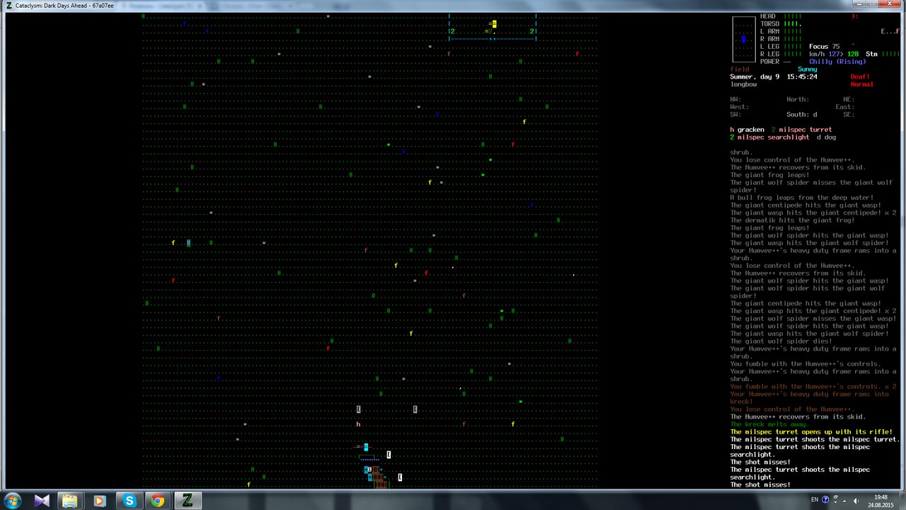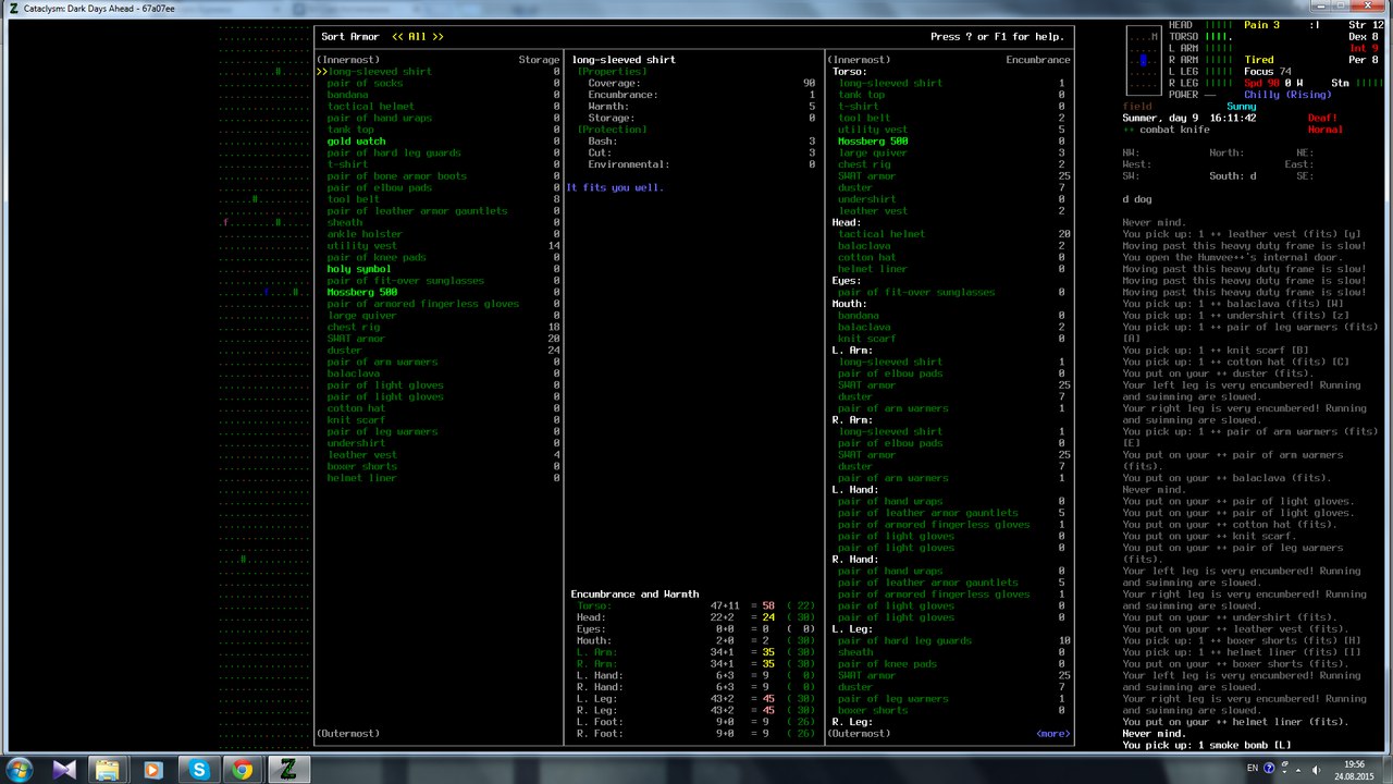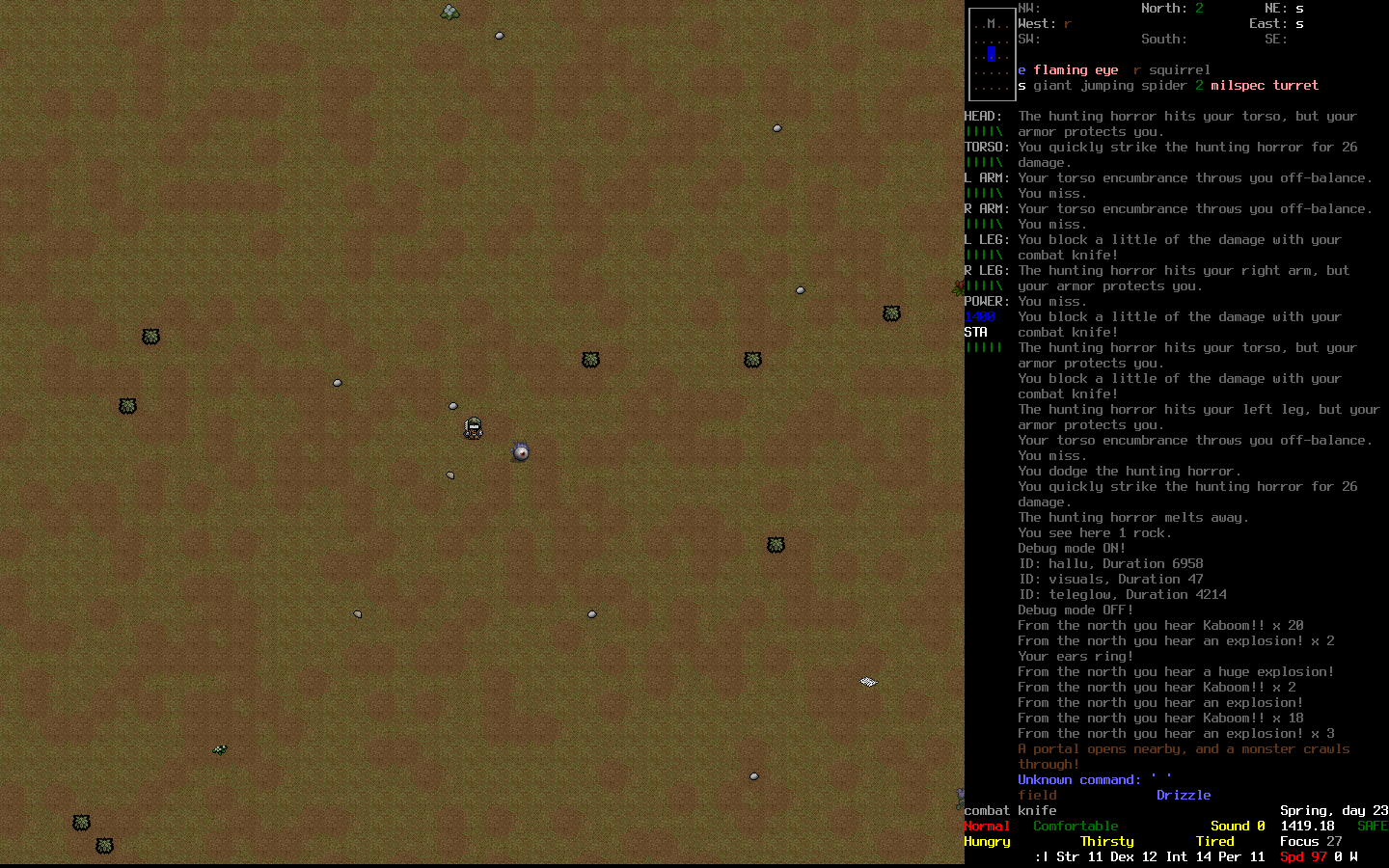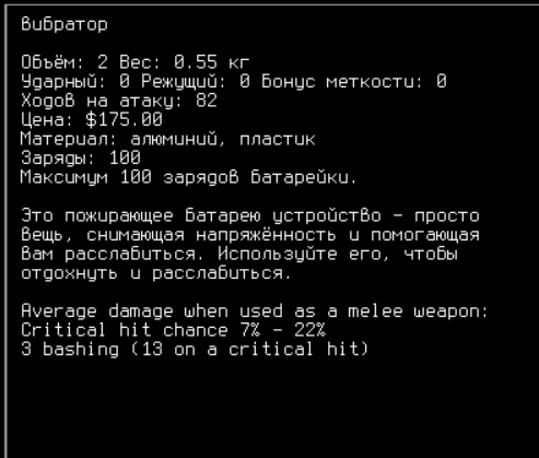 Сataclysm DDA -- это уникальный рогалик включающий в себя нестандартный сеттинг, полностью открытый мир, широкую систему крафта, строительства и конструирования автомобилей. Окапываемся ямами с точёными пиками в лесном домике, коллекционируем музыкальные инструменты в своём особняке, строим слизедвигатели, приручаем котиков, бреемся и стрижёмся. Отыгрываем фуррей, слизней, жрём странные ягоды, варим динамит из мыла, пытаемся убежать от предаторов. Теперь со вкусом фунгицидного газа, танков и необучаемости!