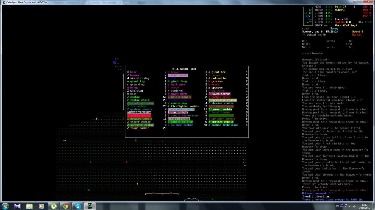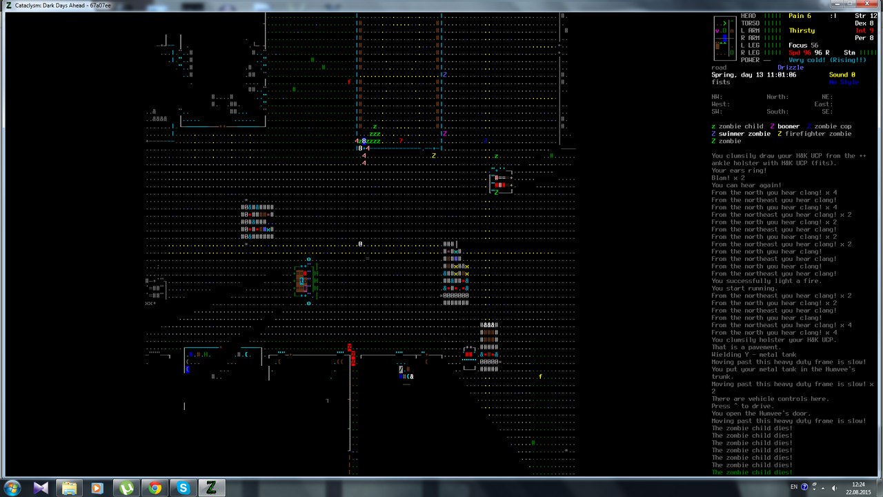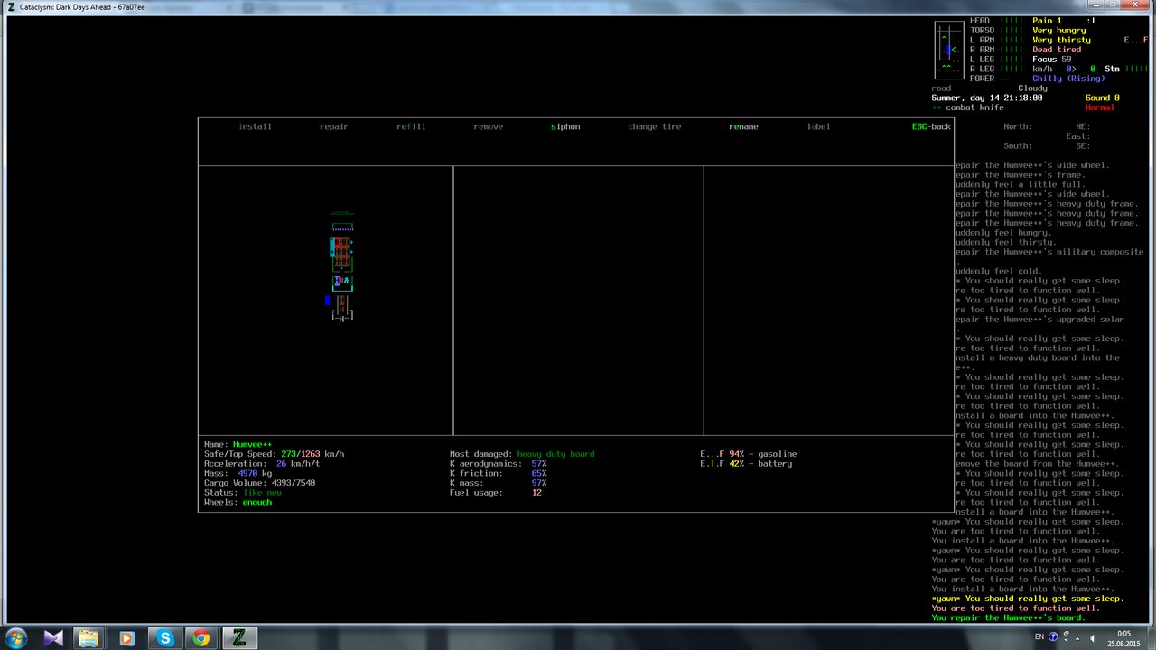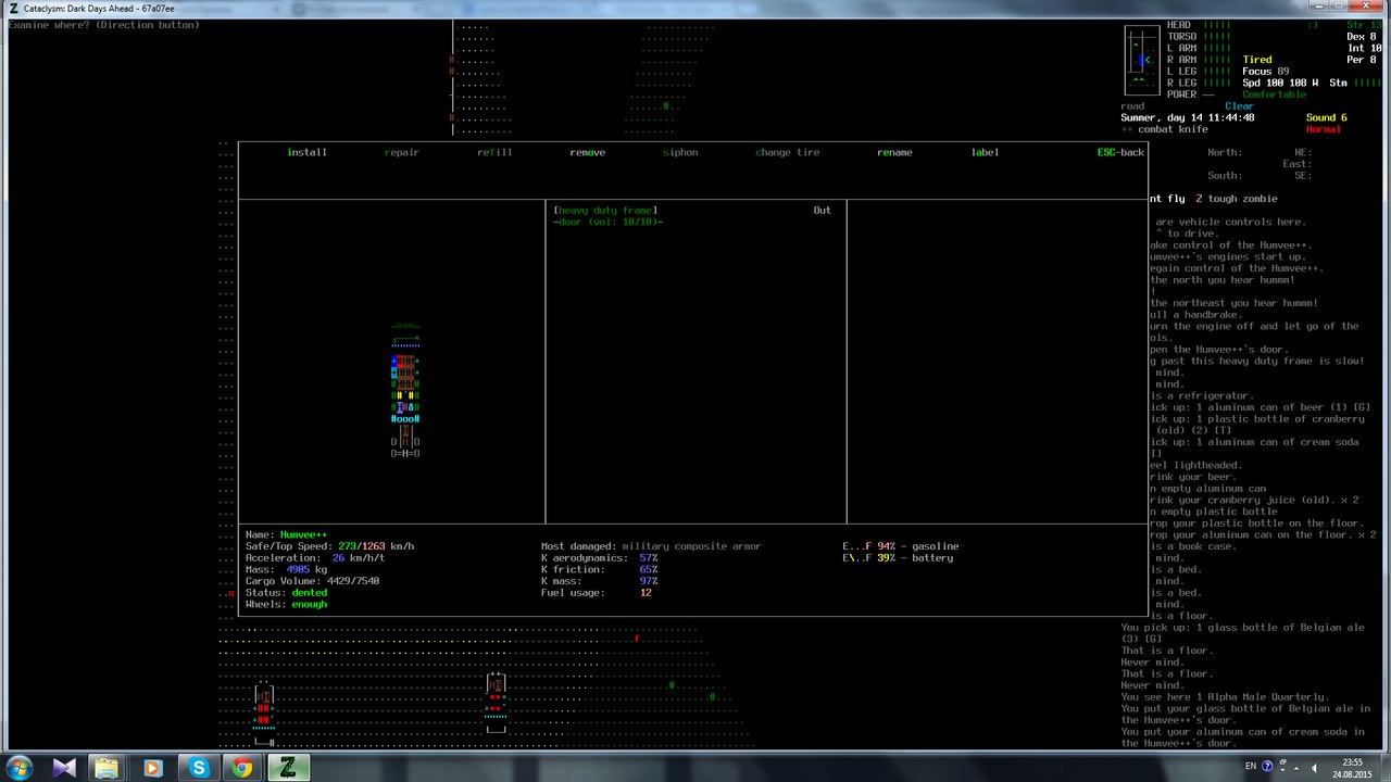 Первая успешная партия в кококлизм. Поставил на хамвик V8 бензиновый с грузовика, хожу сливаю бенз попутно хуяча зомби БОЕВЫМ НОЖОМ. Броню эти уебки прокусить не могут, хотя мне пришлось снять дохуя чего что я сшил в начале потому что становится ЖАРКО. Насколько придется раздеться когда придет лето?